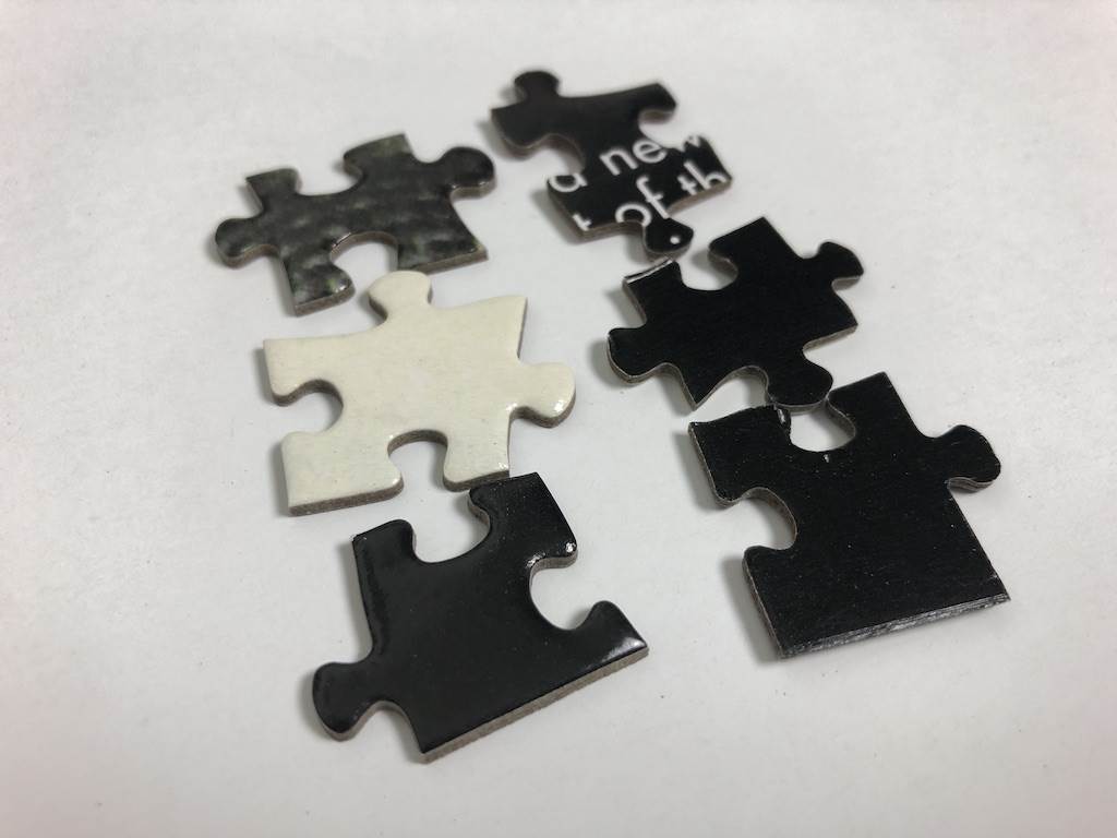 While I’m still in the middle of the sorting process and won’t have this beauty complete for a few more days (too smug?), I noticed right away that the front and back sides of each piece are very distinct. There’s a rounded shape to the “front" and the “back" is very flat. I’m not saying this will make assembly easier, but each piece will provide a little clue for which side is which. Considering the dual sided aspect, this puzzle has great rebuilding opportunities for fans who want to challenge themselves to complete both sides—and not flip it over like I’m going to do for pictures! Check back soon for an update on the completed puzzle.