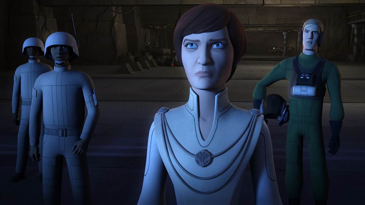 Episode 61: “Heroes of Mandalore (Part 2)" – Sabine comes to grips with the idea that the weapon she designed, which uses pulse energy to cook Mandaorians inside their Beskar armor, is being used by the Empire against her own people. Bo-Katan Kryze (guest star Katee Sackhoff) isn’t too thrilled about this revelation, but she and Sabine vow to infiltrate the Imperial headquarters on Mandalore and destroy the devastating weapon. After being captured by Tiber Saxon (Tobias Menzies), Sabine manages to reconfigure the device to target Imperial Stormtrooper armor instead of Beskar, facilitating the rebels’ escape before they destroy Saxon’s Star Destroyer. Then Bo-Katan accepts the Darksaber from Sabine, becoming the new ruler of Mandalore.