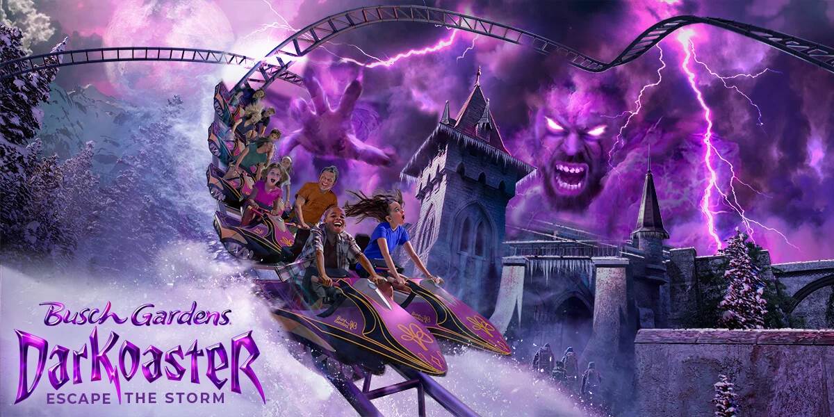 Busch Gardens Williamsburg is following SeaWorld San Diego in not only opening a second coaster in two years, but in also opening a straddle coaster. Much as Arctic Rescue serves as a replacement for Wild Arctic, DarKoaster: Escape the Storm replaces the park’s former Curse of DarKastle dark ride. The new attraction will serve as a thematic continuation of the former, as King Ludwig’s abandoned fortress resurfaces as strange weather patterns have been recorded near the cursed castle grounds. Traveling on snowmobiles across 2,454 feet of track, daring explorers race through total darkness while changing course to avoid the elements. As the weather strikes, riders encounter four accelerating launches on this family-friendly dark ride experience.