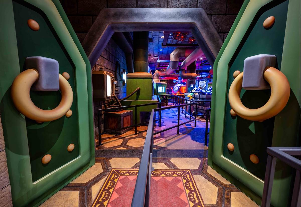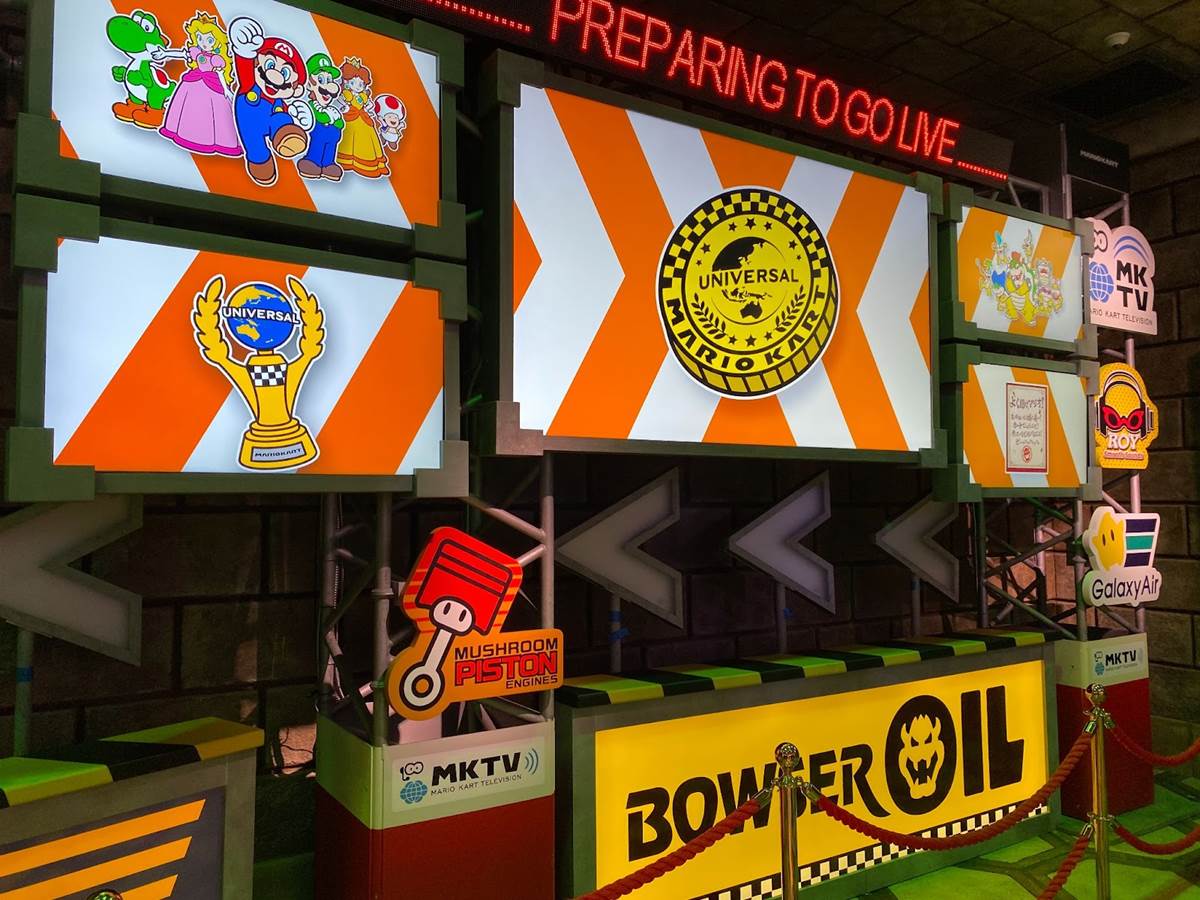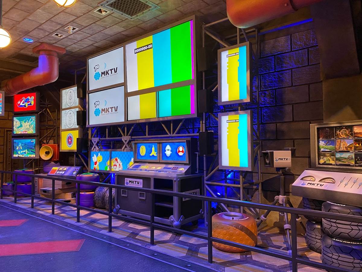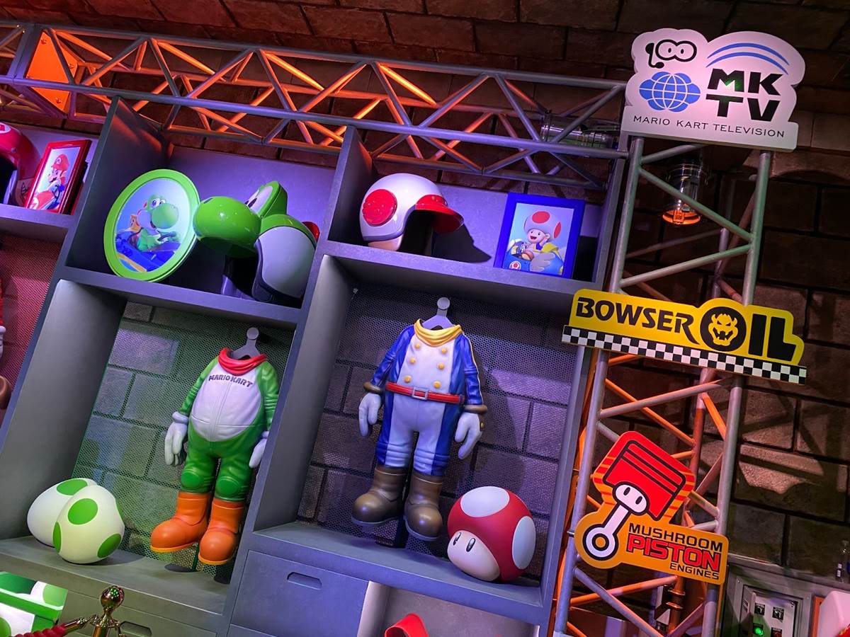 There are also a couple different costumed character experiences: guests can meet Princess Peach, and of course the brothers Mario and Luigi around the land. “The Mario meet-and-greet is right in the middle, and the characters are capable of communicating with you," added Corfino. “And guess what– since we’re in a game, they know your score." That promise reminds me an awful lot of the credit system at Galaxy’s Edge, so I’m very curious to see if it pays off in Super Nintendo World than it has on the planet Batuu. During our hour-long visit to the land today, we did not have the opportunity to ride the Mario Kart: Bowser’s Challenge attraction, but we did walk through its impressive queue. “We’re all about variable attendance levels," said Corfino about the winding switchbacks. On busier days, the line is capable of extending into additional rooms and up stairs. We also walked past some AR viewfinders that allow guests to look out over the land with added characters, effects, and details. But the most detailed parts of the queue are the last few rooms leading up to the boarding area of the ride itself, which take you through Bowser’s study and laboratory before guiding you through the concept of the attraction and your role in the experience.