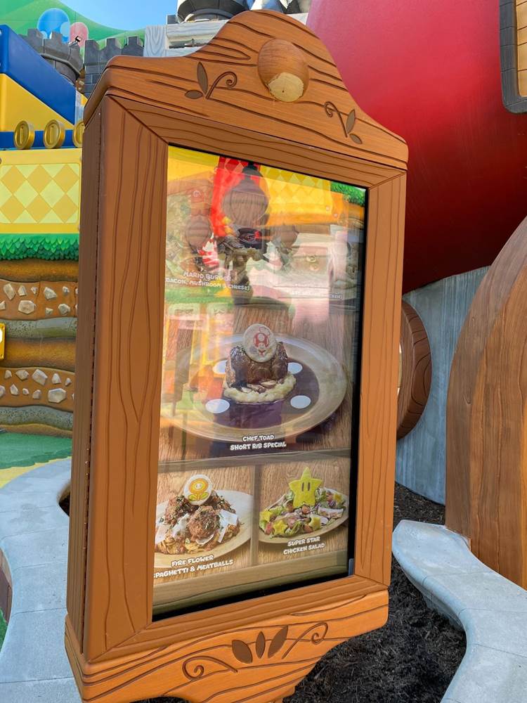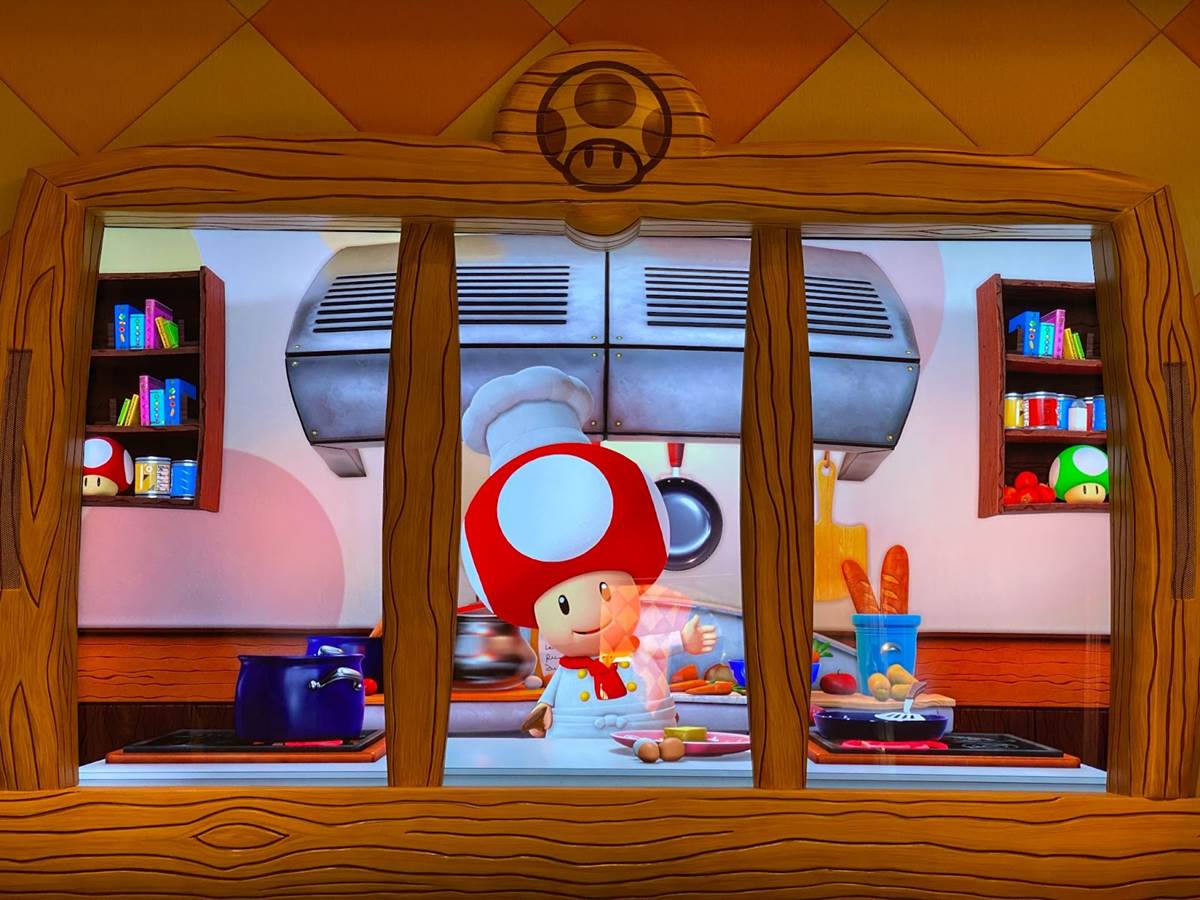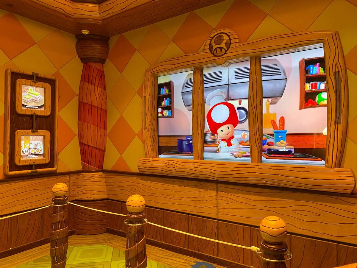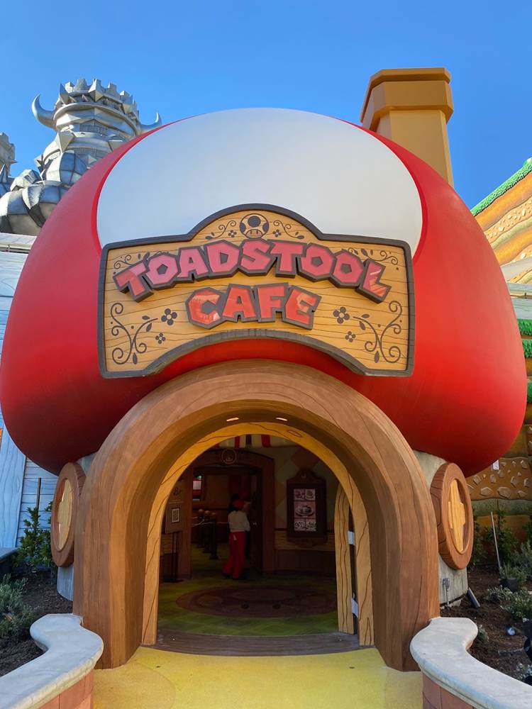 At the end of our tour, we were given the chance to ask Mr. Corfino a few questions, and the first thing I wanted to know was the differences between Universal Studios Hollywood’s version of Super Nintendo World and the one that’s been open in Japan since early 2021. “In terms of the ride itself, [there is] no difference. In terms of how we had to adapt some of the queue lines, it’s only different in that the configuration is different– they still have the same areas; they’re just laid out a little bit differently, because the space is different. In terms of the land itself, we do not have a Yoshi ride, they do. But aside from that, I would say pound-for-pound you’re gonna get the same game experience [and] the same visual experience. It’s essentially the same, but it’s a different configuration because they have a bigger geography than we do. We had to kind of compress it to [fit the space that] we had." Then on our way out we got a quick look at the entrance to the Toadstool Cafe, which will serve as Super Nintendo World’s counter-service restaurant serving Mario Burgers, Super Star Chicken Salad, and an assortment of other fun themed dishes.