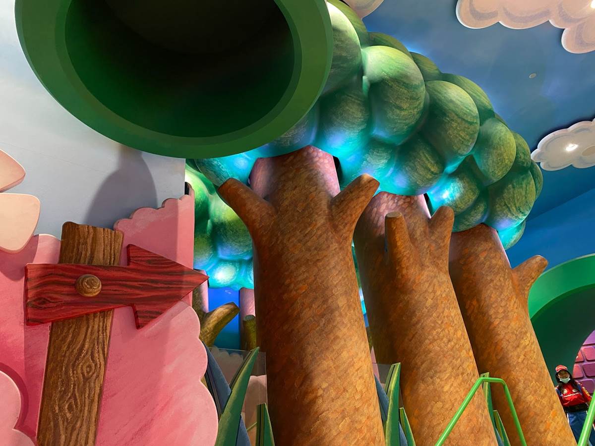 As Nintendo and “Super Mario" fans may already be aware from the existing version of the land at Universal Studios Japan (which first opened nearly two years ago), guests will enter Super Nintendo World through a dazzling warp pipe complete with light and sound effects. “We’ve been working on it for a fair bit of time, and it’s very exciting to now share it," said our tour guide Jon Corfino, Vice President of Universal Creative, as we approached the colorful entrance. “We’re about to start technical rehearsals, but not everything is done yet." With that in mind, our media tour group was only permitted to take photos of certain things, avoiding wide shots of the land itself because many features were still in the process of being painted. “It’s all about the green warp pipe. That’s what takes us away into the game. This is where the adventure begins."