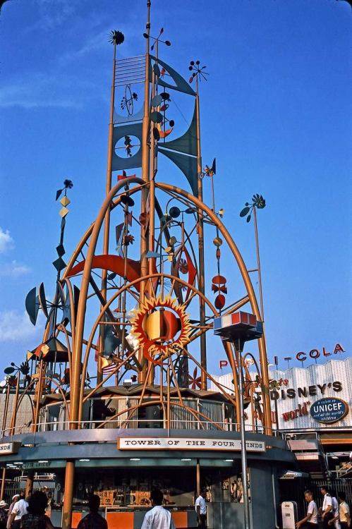 Rolly Crump assisted with several of the attractions, but most of his efforts went to supporting “it’s a small world." While this classic Disney attraction is generally considered to be Mary Blair’s masterpiece, Crump helped design props for several show scenes, and created the “weenie" for the attraction - the Tower of the Four Winds which stood playfully outside the entrance.