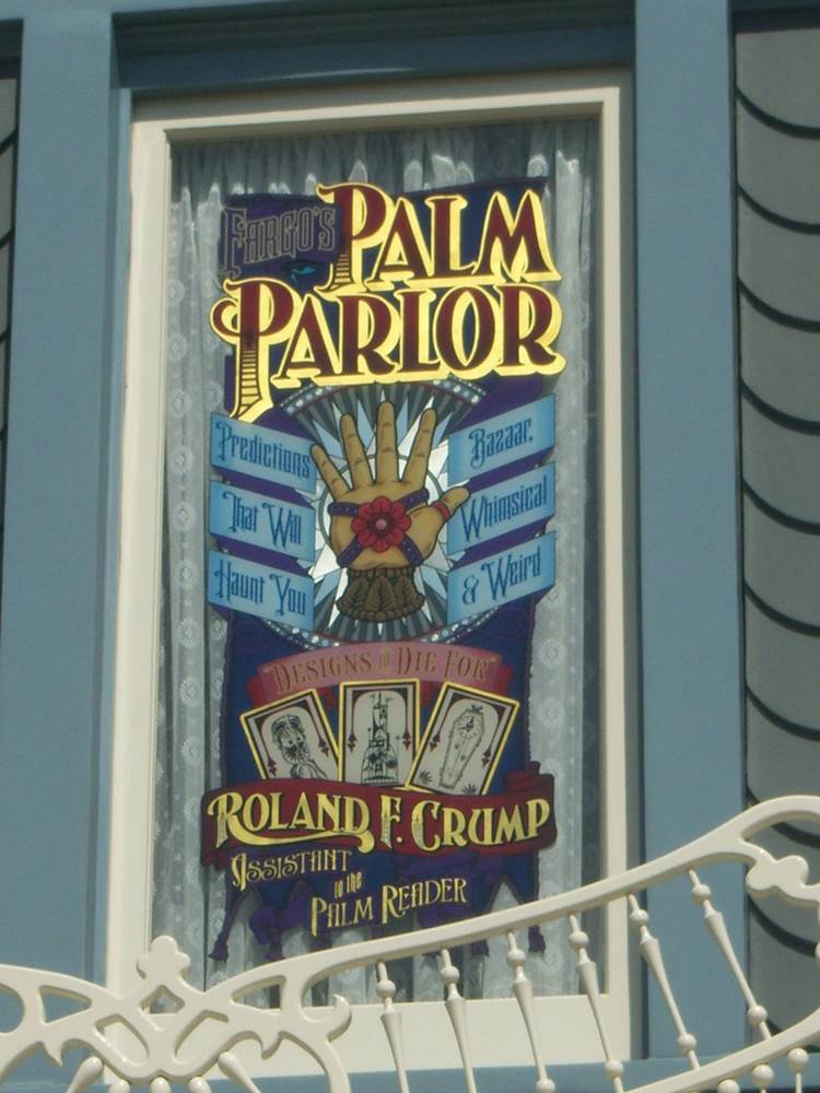 Rolly Crump retired (permanently) from Disney in 1996. He was named a Disney Legend in 2004. In 2009, Crump was honored with a window and sign on Disneyland's Main Street, naming him as the "assistant to the palm reader" of Fargo's Palm Parlor. This title celebrates Crump’s "weird" designs, and the parlor name is a nod to Crump’s middle name, Fargo.