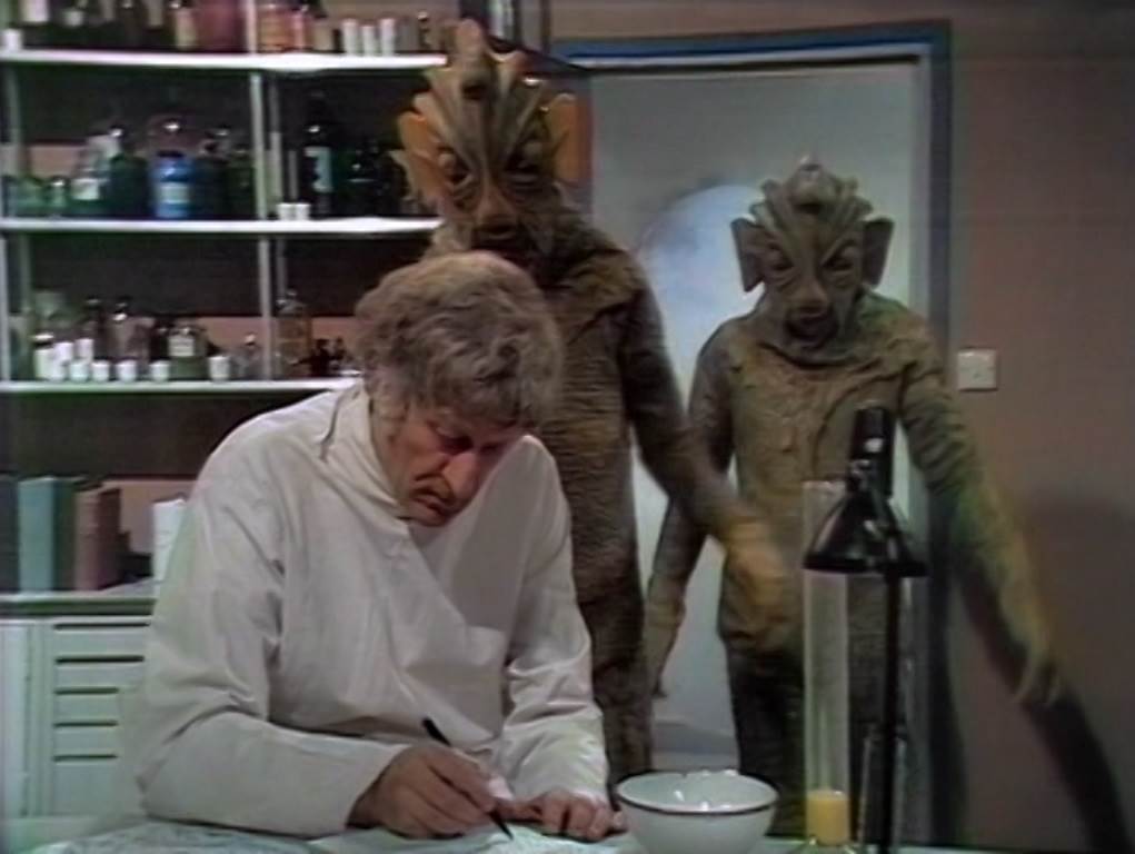 In this story, the Master partners up with the Nestene Consciousness to take over the Earth, beginning by controlling a plastics factory. This leads to some of the scariest scenes featured in Doctor Who to this point, including a Troll doll coming to life and killing a man, another man being suffocated by a plastic couch, and Auton policemen attacking the Doctor and his new companion, Jo Grant (Katy Manning).