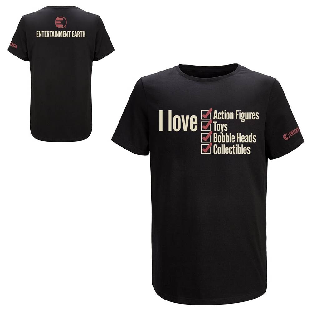 Entertainment Earth also sent us a water bottle, hat, and backpack sporting their logo. We’re planning to wear these looks around town and maybe strike up some conversations! While you can’t buy these goodies on their site, Entertainment Earth does have some fun t-shirts for sale to promote your fandom of the company. Here are a few of the designs that are available now.