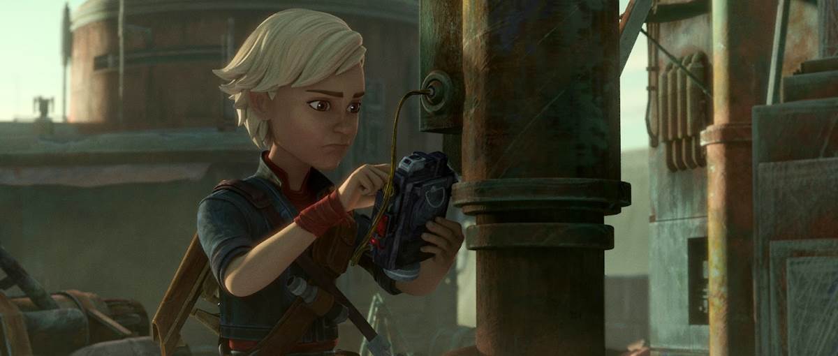 “Retrieval" begins with Hunter, Tech, and Wrecker (all voiced by Dee Bradley Baker) attempting to fix a swoop bike in order to reach a settlement on the other side of the planet, as they are swiftly running out of rations. But suddenly Omega (Michelle Ang) remembers that aboard the Havoc Marauder was still the power droid they had affectionately nicknamed Gonky. The team uses Gonky’s signal to track the hidden location of the Marauder, and find themselves at another, even larger and more industrial Ipsium mine, though this one is almost entirely staffed by children. There, they meet a boy named Benni Baro (Yuri Lowenthal, who voices Peter Parker in the animated Spider-Man), who reluctantly informs them about the leader of the operation, a Fagin-type character called Mokko (Jonathan Lipow from Doom Patrol) that rules the orphans with an iron fist, forcing them to compete for food in the mines. Benni’s chief competition for “top earner" is a young teenager named Drake (Aleks Le of Raya and the Last Dragon fame), who slurps up the extra bowl of soup he gets for being Mokko’s favorite.