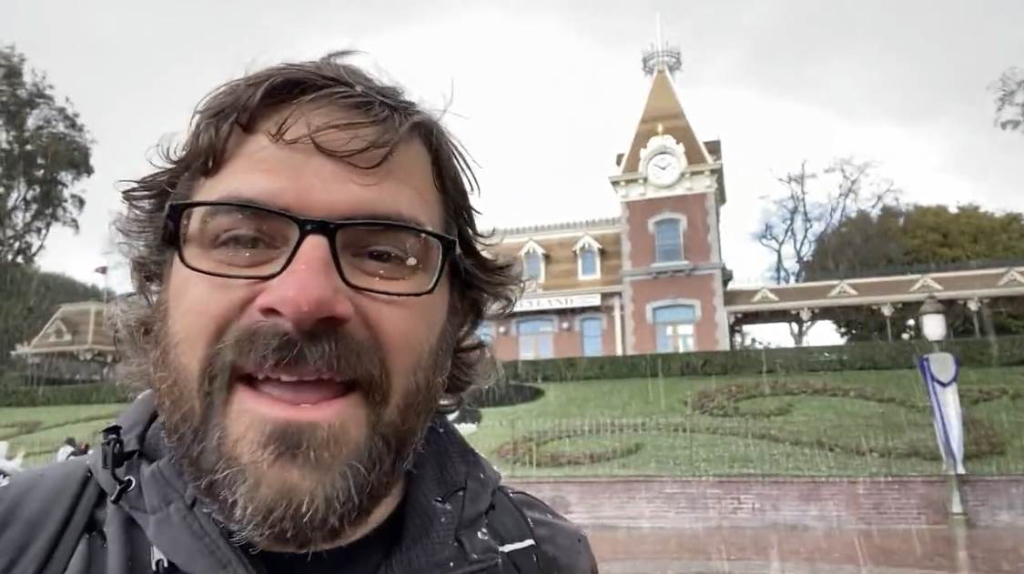 Walking into Disneyland, the precipitation turns from snow to rain within this minute long video:
