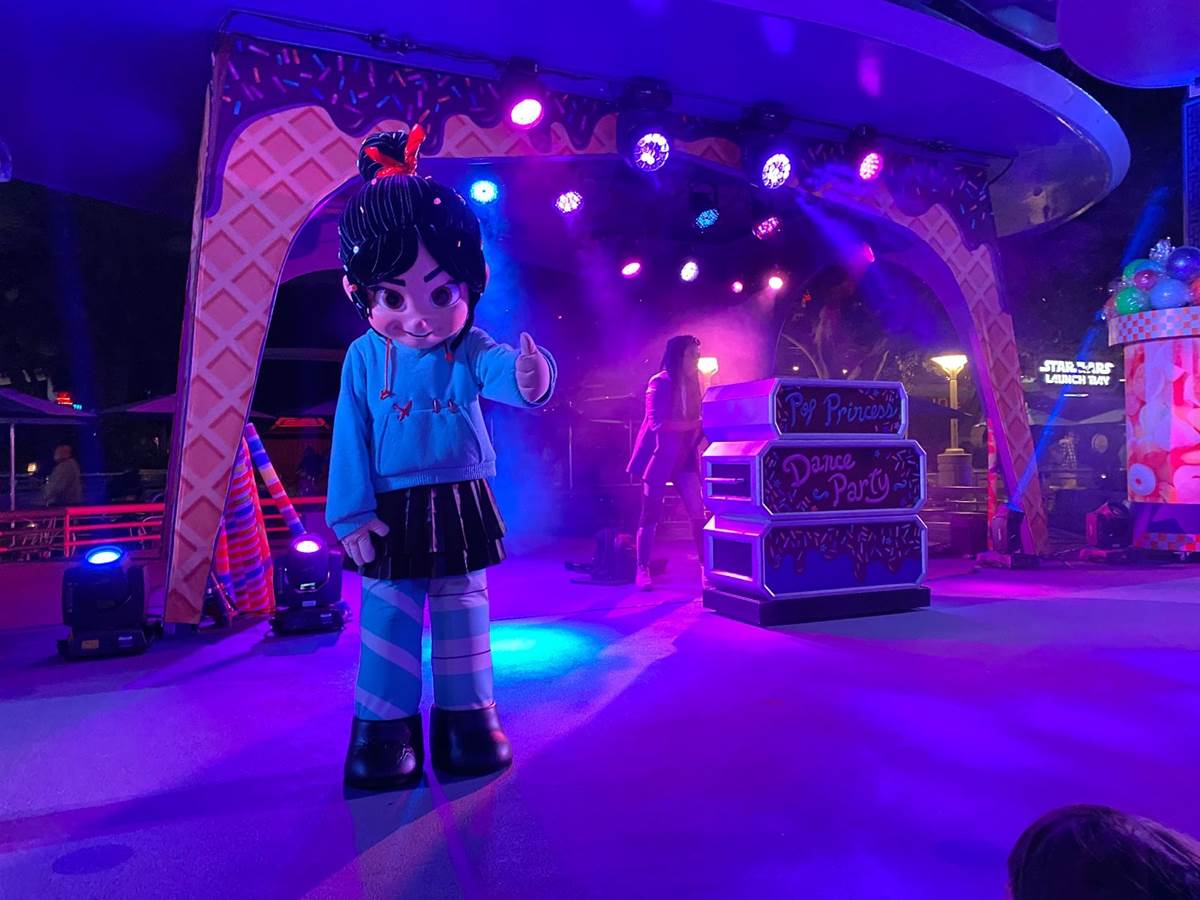 Princess Vanellope Von Schweetz rocked the night away in Tomorrowland at the Pop Princess Dance Party.