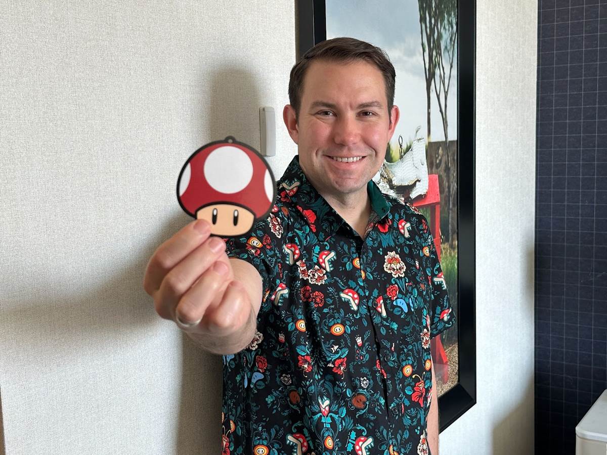 Need something a little more formal? The Flower Power Button Up ($44.90) is a cool way to celebrate your Nintendo fandom with more subdued colors. From a distance, it looks like any floral button-up shirt. It’s only when you get close that you notice the flora on the shirt are unique to Mario’s world, with piranha plants, fire flowers, boomerang flowers, and super leafs hidden in the pattern. Each of these products also comes with a cool power-up mushroom tag.