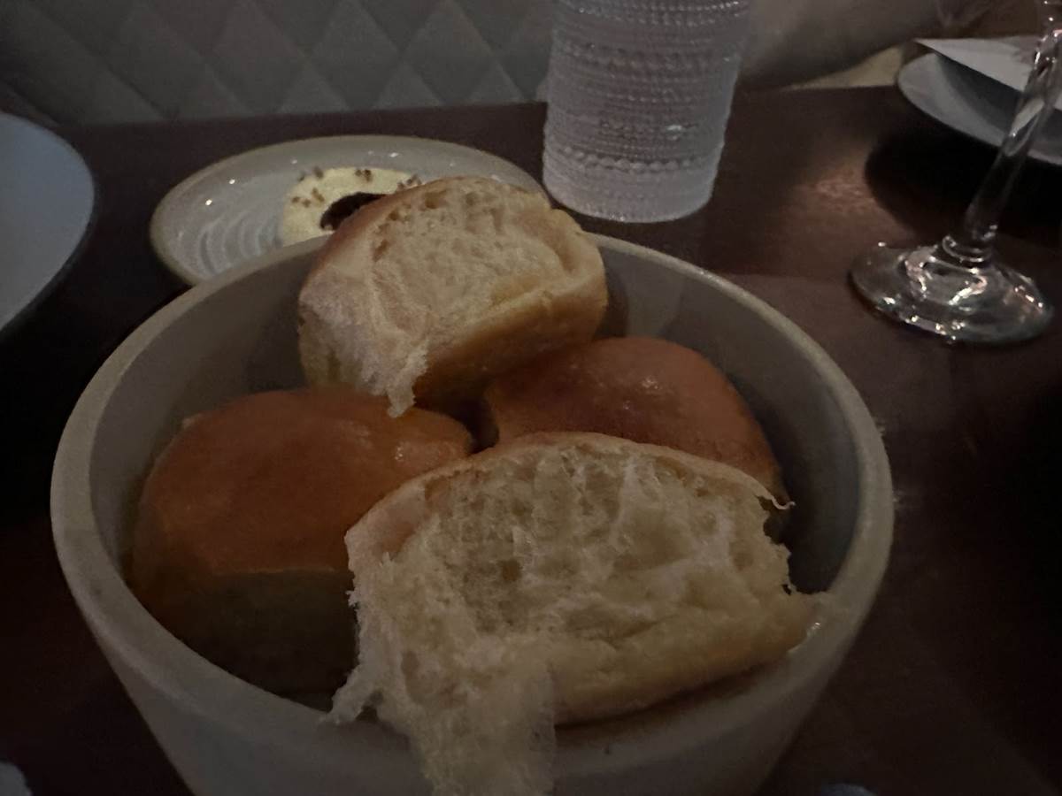 Each episode of Restaurants at the End of the World takes Kristen to far-flung locations including Boquete, Panama; Svalbard, Norway; North Haven Island, Maine; and Paraty, Brazil. During the chef’s introduction, she revealed that while she isn’t seen crying in every episode, she most definitely cried in each location. She was so touched by the people she met there, the ways they innovate their cuisine, and how they live with the ingredients nature provides right in their area. And so, the menu for the night was selected to accompany specific memories from her travels. Starting with breaking bread, the Parker House Rolls with Whipped Brown Butter, Molasses, and Bee Pollen evoked feelings of being back on North Haven Island. For an appetizer, we also started with Scallop Crudo and Crunch Lettuce Salad.