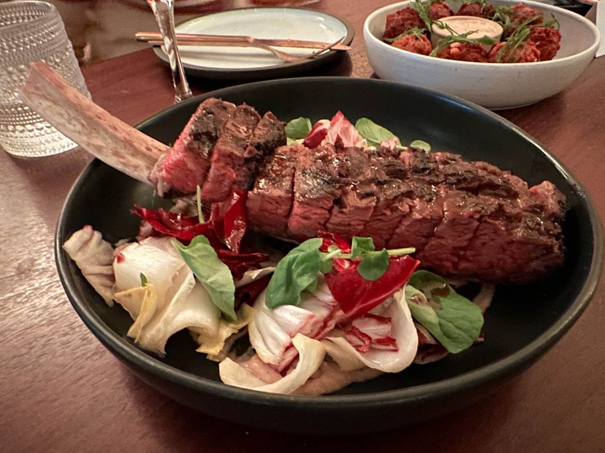 In one episode, viewers will see Kristin Kish cook with cow tongue. But at Arlo Grey, we were treated to the most tender 72 Hour Pastrami Beef Short Rib, served over a bed of charred eggplant, watercress, and bitter greens. These were accompanied by some Texas Blue Corn Fritters.