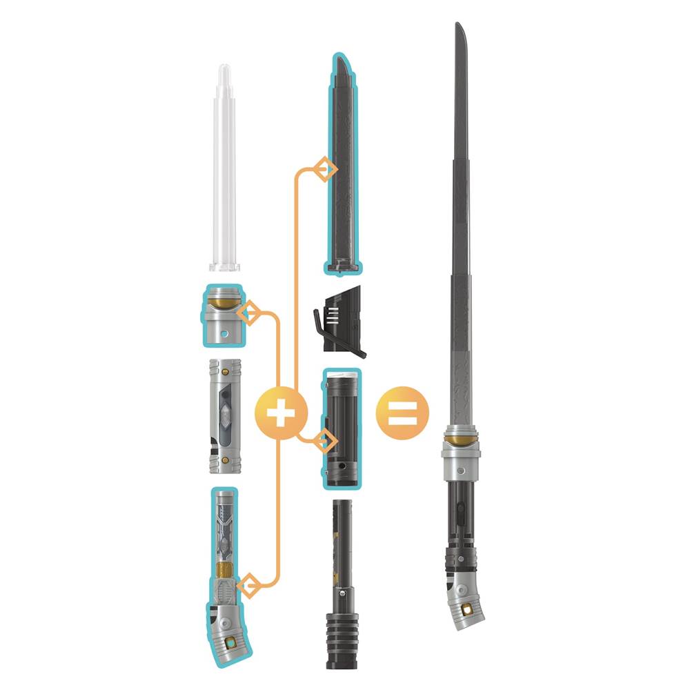 - Featuring character-inspired design, deco, and sound effects, this Lightsaber includes an extendable white blade that flicks open, cap, cover and core so kids ages 4 and up can assemble their own light up Lightsaber for imaginary duels. These pieces are compatible across the entire Star Wars Lightsaber Forge line, with kids being able to mix-and-match parts to create, customize and master thousands of combinations! (Total combinations includes all Lightsaber Forge products. Additional Lightsaber Forge products each sold separately. Subject to availability.) Available this Summer at Hasbro Pulse and other major retailers.