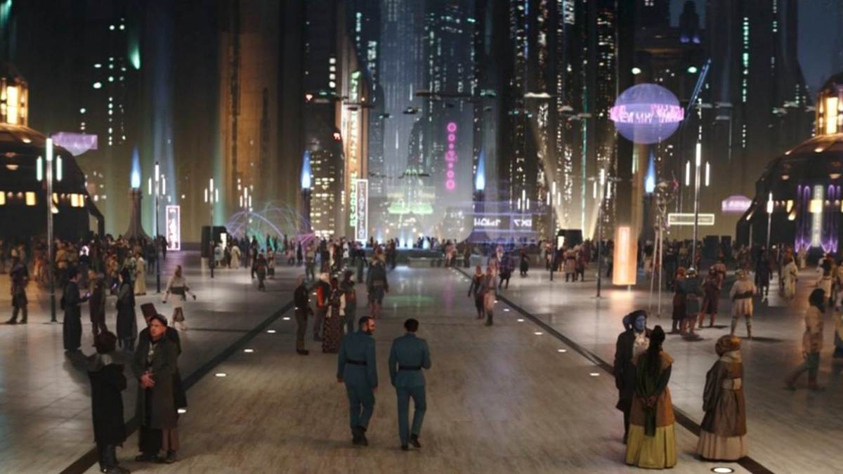 Shirley: That’s the tone that Jon and Dave so expertly crafted in The Mandalorian and with [The Book of] Boba Fett. The show kind of takes little left turns that inform and support the ‘A’ storyline in certain ways that [are] really unexpected at times. It takes the audience on a journey around the galaxy that further gives the show some variety and fun. The episode on Coruscant was just so cool, because that carries on and informs what is happening there, almost like the prequel trilogy. It’s dealing with times and places that inform other pieces of art that are part of this whole universe that we’re in. I just think it’s cool how it all supports each other. We can reference that, and we can support that in different ways. We can throw people off in certain ways. But I would say the challenging thing for this season was kind of the fun part.