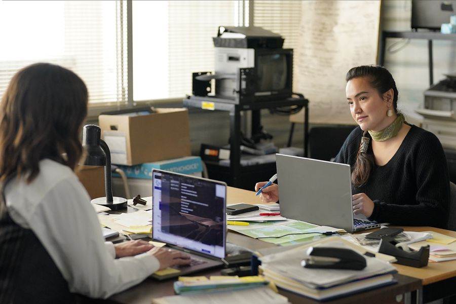Gabriel interrupts them and calls the newsroom together to show the database his team has compiled about missing and murdered indigenous women in Alaska. The statistics are devastating. When Bob hands them the records on Gloria’s phone, he describes how he channeled his inner Eileen. Roz and Eileen learn that Gloria was alive for two days after being dumped by Ezra. She even called 911 for help while she froze to death on the tundra. If she made a call, then there is bound to be a recording, and Roz and Eileen have a new target to search for.