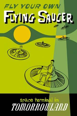 Have you ever played air hockey? Now imagine yourself sitting on the air hockey puck. That was the experience on the Flying Saucers in Disneyland, which operated for five years from 1961 to 1965. The saucers were originally proposed by an outside designer to operate like a traditional hovercraft - blowing air out the bottom to create the air cushion. When Bob Gurr tried out the proposed hovercraft unit, he found it loud and it blew air and dust everywhere. Based on Gurr’s comments, a second attraction design was created. Instead of the vehicles blowing air, the attraction platform itself provided the air cushion, just like an air hockey table. Gurr designed the flying saucer vehicles, which could accommodate two guests and would float on air, moving in whatever direction the guest leaned. High operating and maintenance costs cut Flying Saucers’ life short, but the attraction remains one of the most unique ever operated at a Disney park.