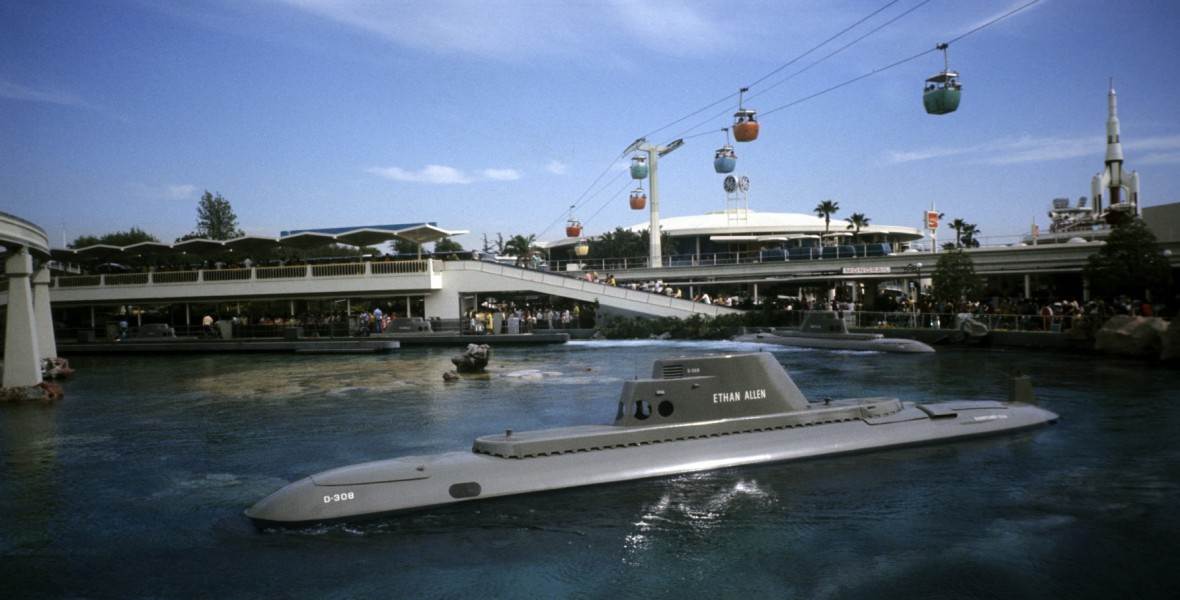 The third major piece of the Tomorrowland Expansion trifecta was the Submarine Voyage attraction. The sea-based attraction is fairly generic in its storyline, incorporating elements of traditional underwater themes such as shipwrecks, ice caps, and the lost continent of Atlantis. Bob Gurr helped design the submarines for the attraction, which never actually dove fully underwater. Instead, they maintained a steady depth along a defined track. The submarine’s dive was simulated through the use of directionally-aimed bubbles and variable lighting, to give guests the illusion that they were in fact descending deeper underwater. This is an excellent example of how Disney used creative ways to tell a story in an attraction.