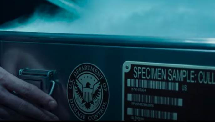 This is quite possibly the most interesting image we get in the trailer. We see someone opening a caser baring the crest of the U.S. Department of Damage Control. The case is labeled “SPECIMEN SAMPLE:" and all we can see following that is “CULL." While this is obviously far from clear, it’s possible this is a reference to the Avengers: Infinity War henchman and member of the Black Order, Cull Obsidian.