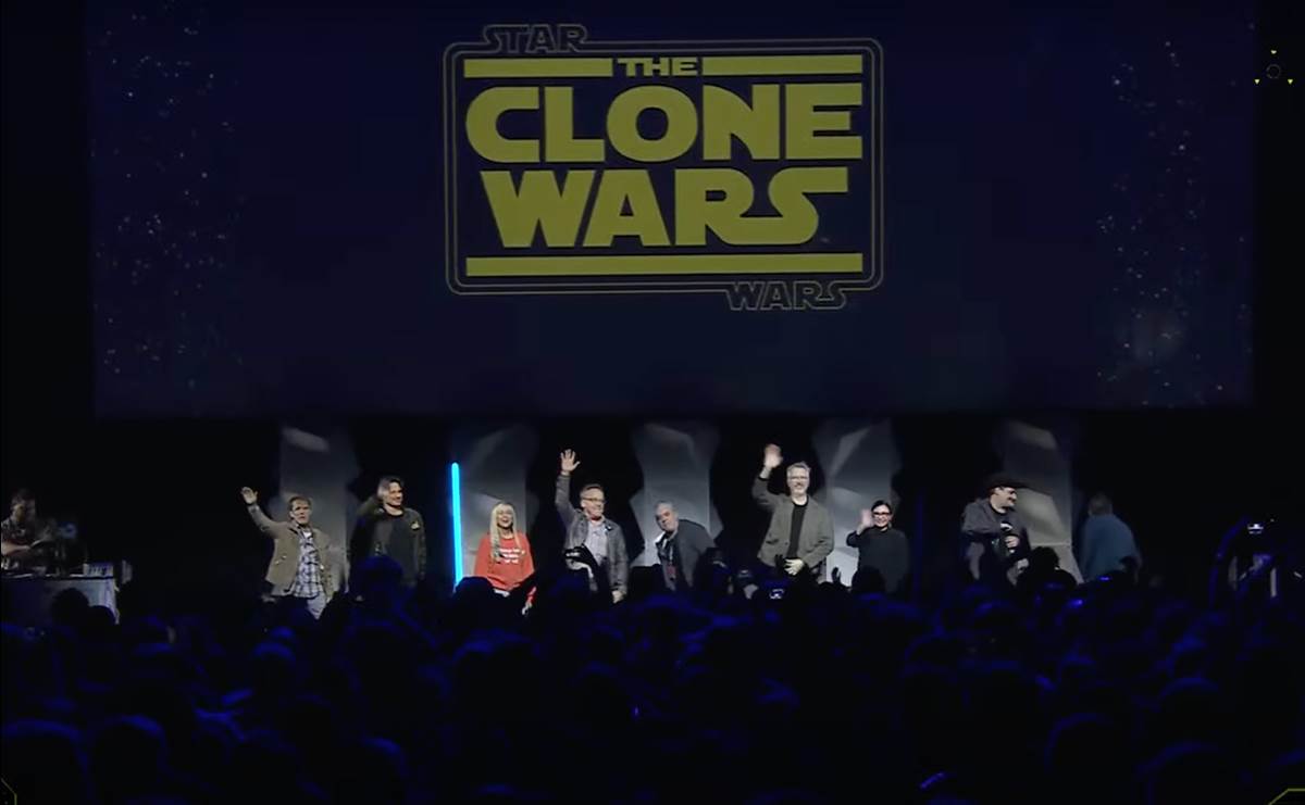 Voice actors Dee Bradley Baker (Clone Troopers), Ashley Eckstein (Ahsoka Tano), Matt Lanter (Anakin Skywalker), and James Arnold Taylor (Obi-Wan Kenobi) were then brought on stage and shown a photo of them all with George Lucas at the premiere of the film that launched the series. Recalling their audition stories, Ashley laughed about how Dave Filoni told her that Ahsoka should have an Icelandic accent. She got a dialogue coached and studied after receiving that feedback, only to be told to just use her regular voice. James Arnold Taylor had already been voicing Obi-Wan Kenobi starting with the Clone Wars micro-series and various video games, unaware that it was all an audition leading up to this role. The project was under such secrecy that Matt Lanter was told that he was auditioning for a character named “Deek Starkiller." Once he got the part, he not only learned that he was voicing Anakin Skywalker, but that he was also replacing another actor who had already recorded several episodes.