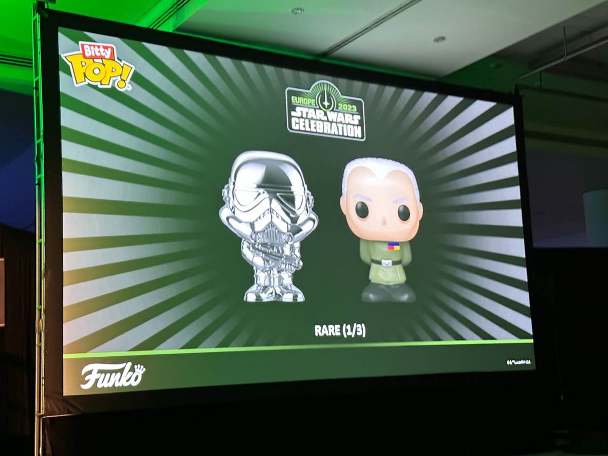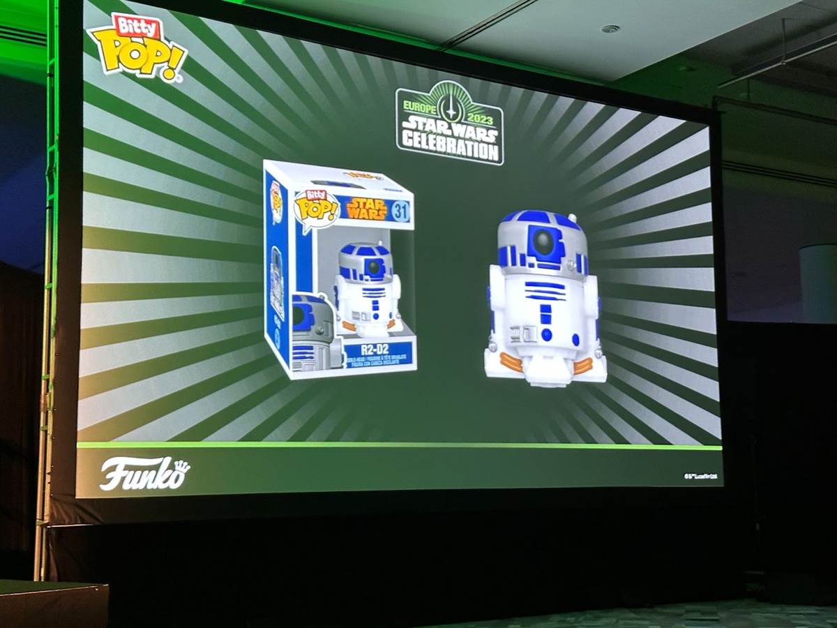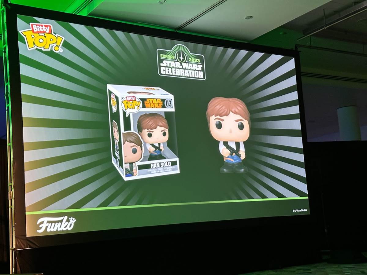 At the core of Funko’s brand are the Pop! vinyl figures and Star Wars has been a top brand for the company since 2011, currently standing at more than 600 releases (including three exclusive to this year’s Star Wars Celebration). While it wasn’t a secret that Star Wars would be the next collection to get the Bitty Pop! treatment (a line of miniature Pop! figures that come in small 4-packs), the big announcement was the entire wave of 16 figures. The collection will honor the film that started it all, A New Hope, and prior to the panel, Funko had teased an image of Luke Skywalker. Funko EMEA digital marketing manager Alex McIntyre enlisted Emily’s help to show the difference in size between a standard-sized Funko Pop!, a keychain version, and the new Bitty Pop! Luke Skywalker.