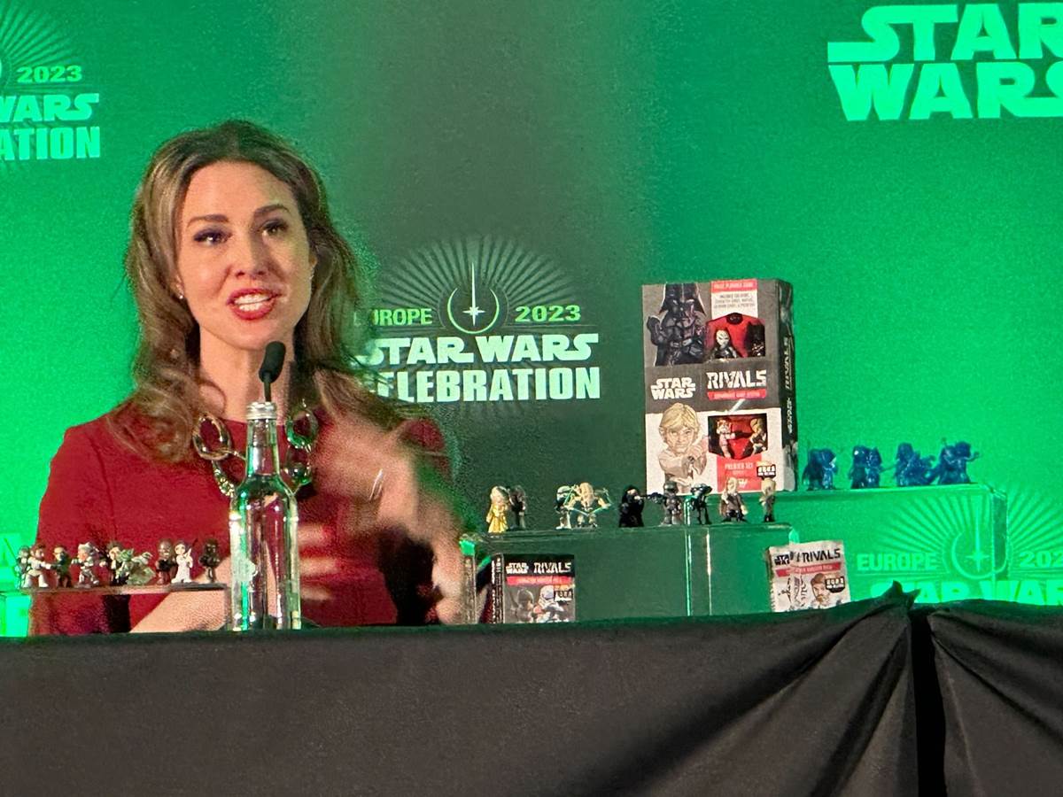 Funko Games general manager Deirdre Cross kicked off the panel with a look at the new card game Star Wars Rivals, which debuted at Star Wars Celebration in limited quantities before being released on May 4th (at WalMart in the U.S. and Game in the U.K.) and expanding to more retailers at a later date. We got a look at the game in action earlier this weekend when we visited the Funko Booth and got a tour (click here to see it all). One of the points Deirdre stressed is that gameplay is for a wide range of Star Wars fans and the experience changes based on the character and location they’re in. There are 22 characters in the first wave and while no news was shared for a potential second wave, they have a lot of plans for ways to expand the collectible figures and game in the future.