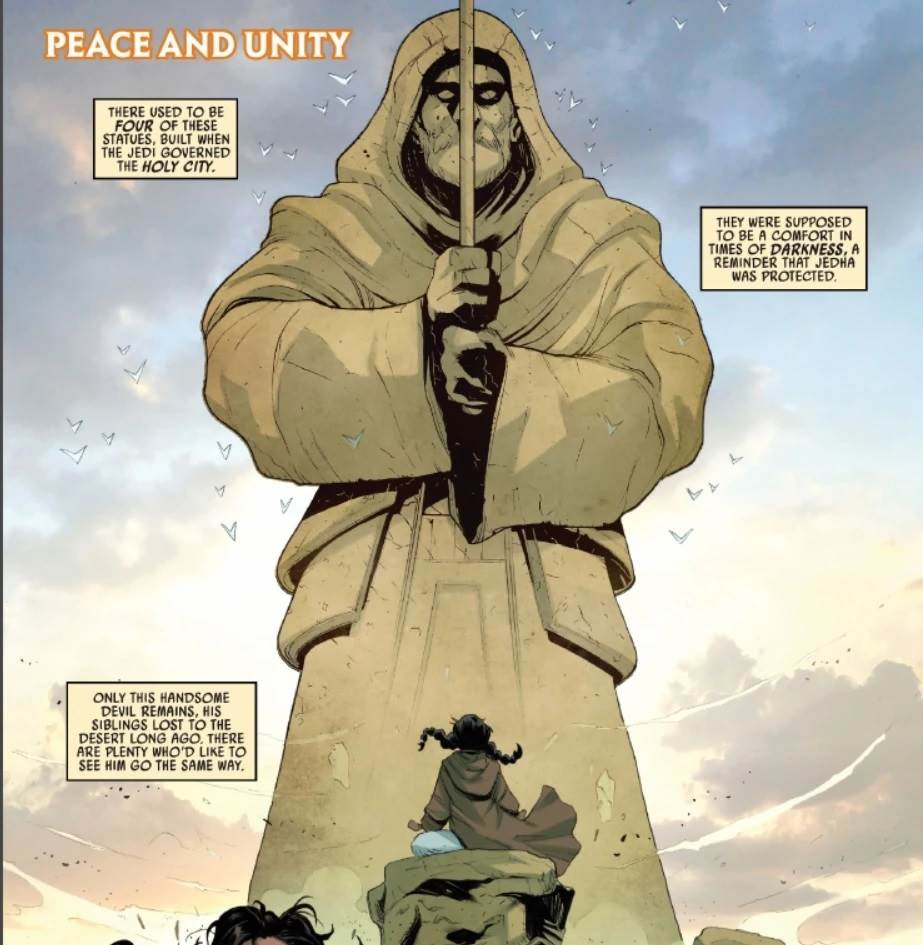 Cavan Scott: We discussed that in our second visit to [Skywalker] Ranch. That second week was when we really delved into Phase II, and focused on what the story for [that would be]. We were talking about Jedha right from the off on that, and as soon as you talk about Jedha, relating to the Jedi, you want to know why that statue’s on its side. And as for why things are inside it or underneath it… it’s the Raiders [of the Lost Ark] fan in me. It’s delving into hidden tombs and that kind of thing. As [exemplified in] things like Dooku - Jedi Lost, I’m fascinated with artifacts. I’m fascinated by the mysticism thing– for me it’s all about the Sith and the Jedi history. I’m an Old Republic fan, and so any chance I get to have a big archive of doomed material that shouldn’t be there, I will put it somewhere. And why not put it in a giant statue that everyone can see every day, because everything’s always in plain sight.