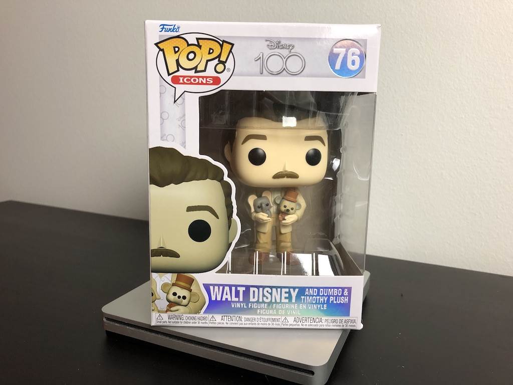 We kick off this round of Entertainment Earth Spotlights with the Disney100 Walt Disney with Dumbo and Timothy Plush Funko Pop! This designs features Mr. Disney himself and some toy versions of the characters from Dumbo. The Pop! debuted earlier this year as part of a wave of Disney100 figures and comes packaged in the standard Funko window box. It includes the mold number (76), “Pop! Icons" indication, prismatic coloring along the base, number, and back, and features a hexagon framed picture on the back of Walt Disney with the actual Dumbo plush.