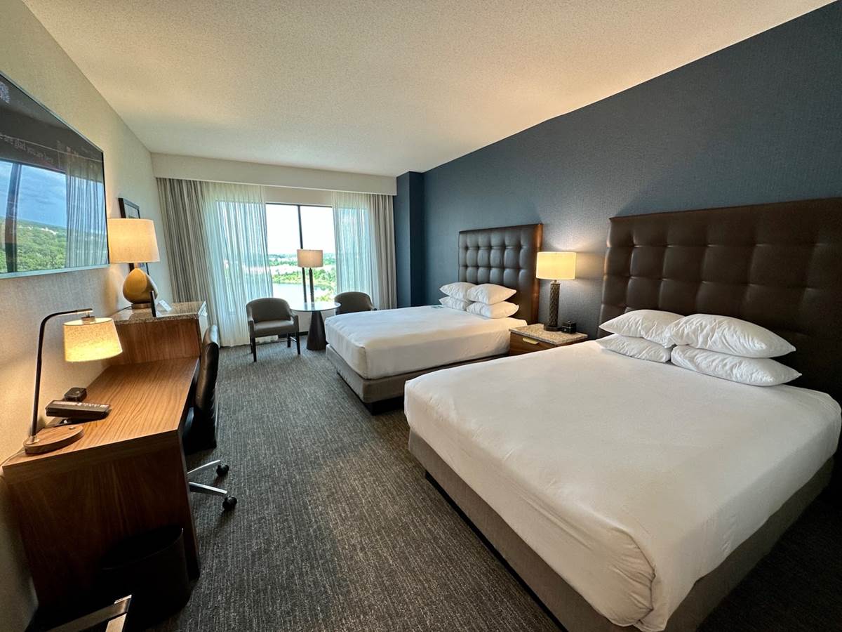 Other hotel amenities include Wi-Fi throughout the hotel, scenic views, pool-side and lobby restaurants and bars, a Marketplace with a premium selection of grab and go items including Pizza Hut and Starbucks, 24-hour fitness facility, lobby business center, a resort-style saltwater pool with splash pad, and a game arcade.