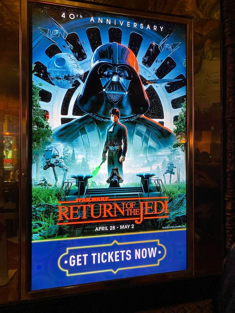 On May 25th, the beloved third film in the original Star Wars trilogy– Return of the Jedi– will celebrate its 40th anniversary of having been released into theaters. And in celebration of that momentous occasion, the movie has been rereleased theatrically, including at the Disney-run El Capitan Theatre in Hollywood.