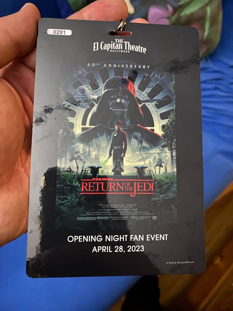This evening I was lucky enough to attend the Opening Night Fan Event for Return of the Jedi’s 40th Anniversary at El Capitan, and it was such a treat being able to see this movie with an enthusiastic crowd of Star Wars fans again on the big screen.
