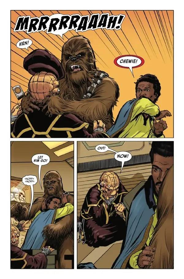 In this week’s Star Wars: Return of the Jedi - Lando one-shot comic book from Marvel (the third in a series celebrating the film’s 40th anniversary), we get another piece of that puzzle as Chewie and Lando continue to seek a way to retrieve their friend Han Solo from the clutches of Jabba the Hutt.