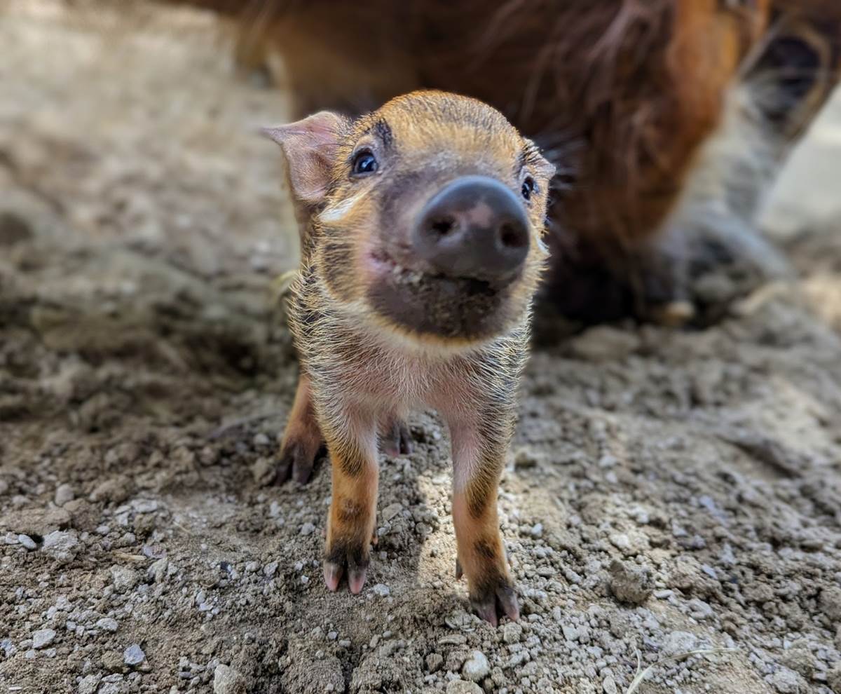 Mom Daisy delivered this healthy and spunky piglet last month, and both are spending time backstage bonding. The healthy male, which has not yet been named, joins the seven members of the red river hog family – also known as a “sounder."