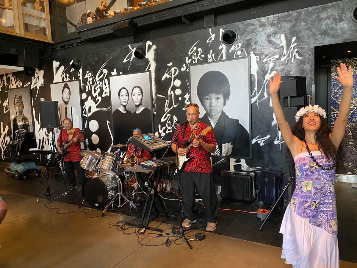 A live band played some relaxing Hawaiian music, with occasional accompaniment from hula dancers.