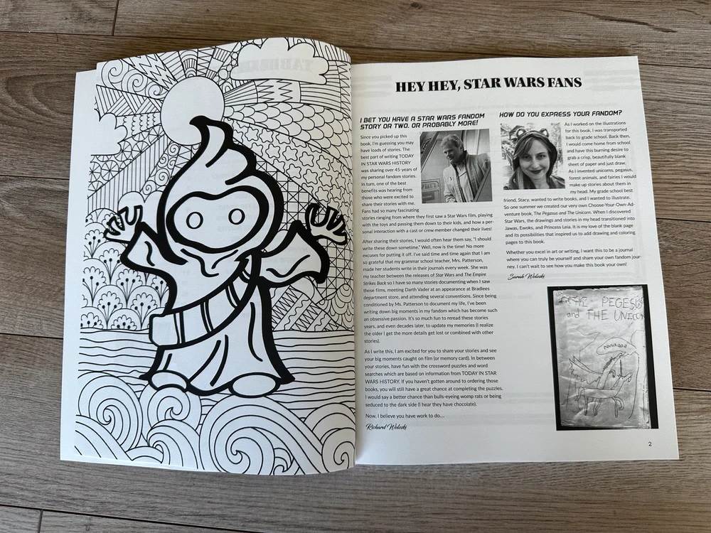 And now, they’re inviting other fans of A Galaxy Far, Far Away to document their own Star Wars experiences via a new activity book entitled Skywalking Through My Fandom– a follow-up to last year’s self-published releases Today In Star Wars History Parts 1 & 2.