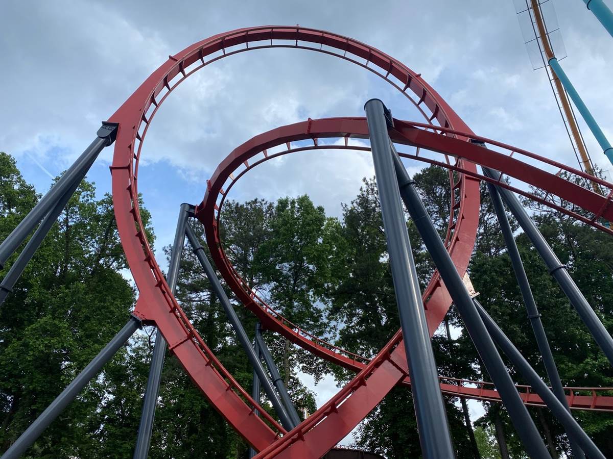 Another classic at Six Flags Over Georgia is Mindbender, which recently got new trains, a repaint and a retheme to The Riddler Mindbender. Despite all the changes, it’s still an intense, yet smooth coaster experience from the defunct coaster manufacturer Schwarzkopf. I was really impressed by the scale of this ride, particularly with its setting in a ravine. Some of the views you get on the ride as the coaster dives into the ravine are absolutely stunning. Add to that your typical intense loops for this coaster type, and smooth experience, and you have a classic that still holds up to this day.