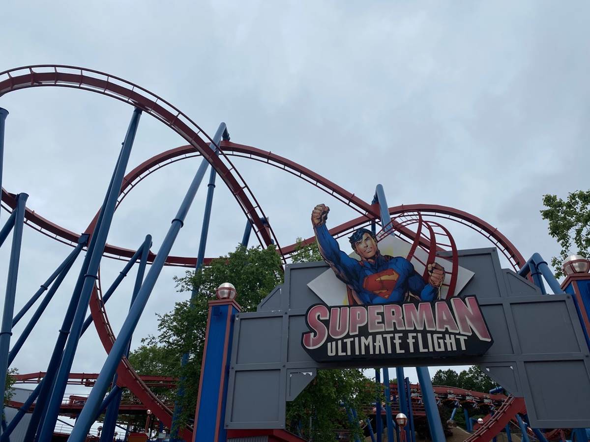 Superman: Ultimate Flight is a smaller version of Manta at SeaWorld Orlando and Tatsu at Six Flags Magic Mountain, two of the more intense coasters out there. Undoubtedly the most intense part of all three rides is the pretzel loop, named after a pretzel because it looks like one. This inversion thrusts you onto your back and is one of the most intense feelings on any coaster. Aside from the pretzel loop, this ride really felt like a watered down version of the other two. It had the sweeping motions that flying coasters are known for, but it just felt a bit meandering.