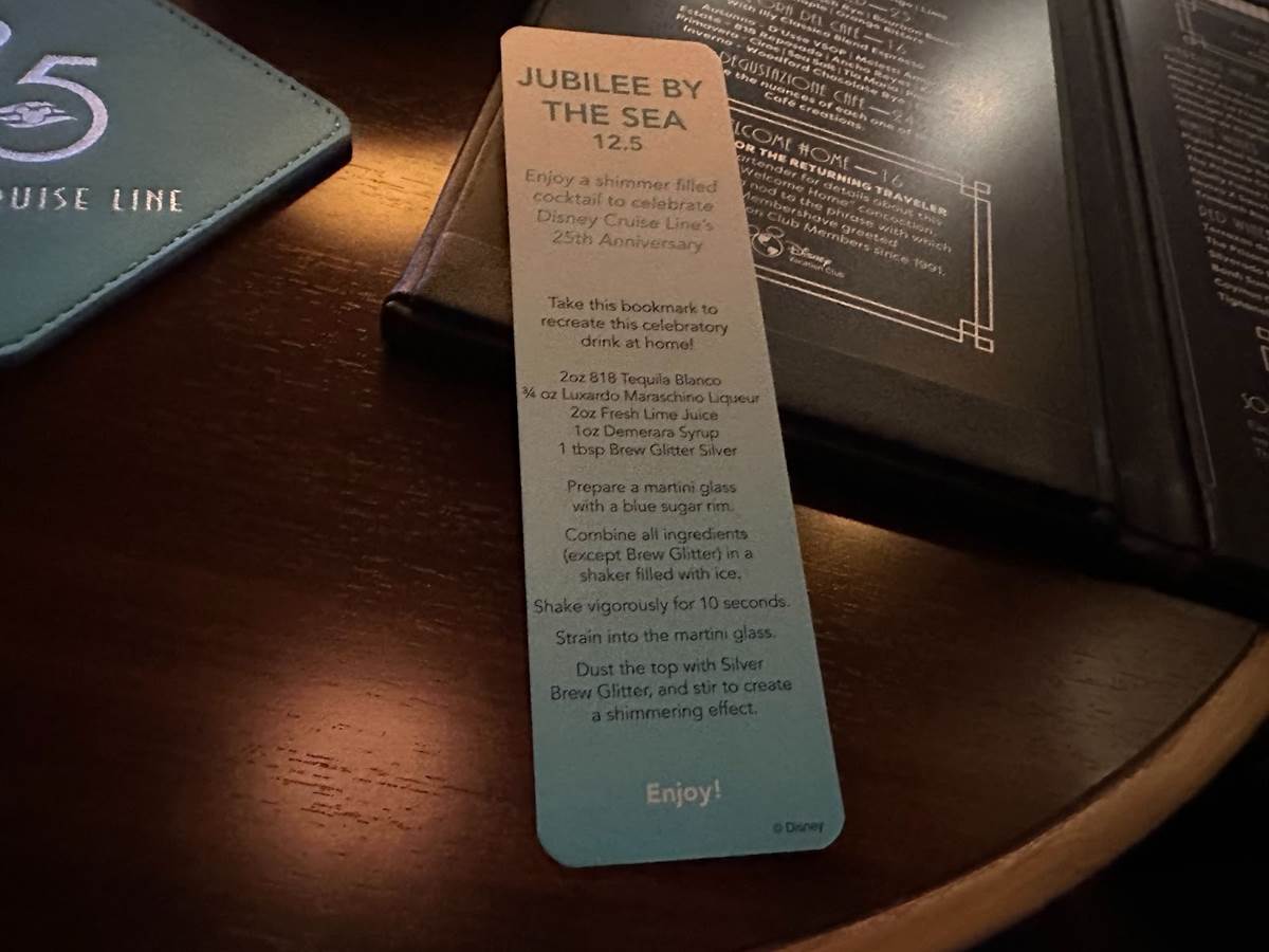 A signature cocktail called the Jubilee by the Sea comes with two keepsakes - a bookmark with the drink’s recipe and a pleather coaster.
