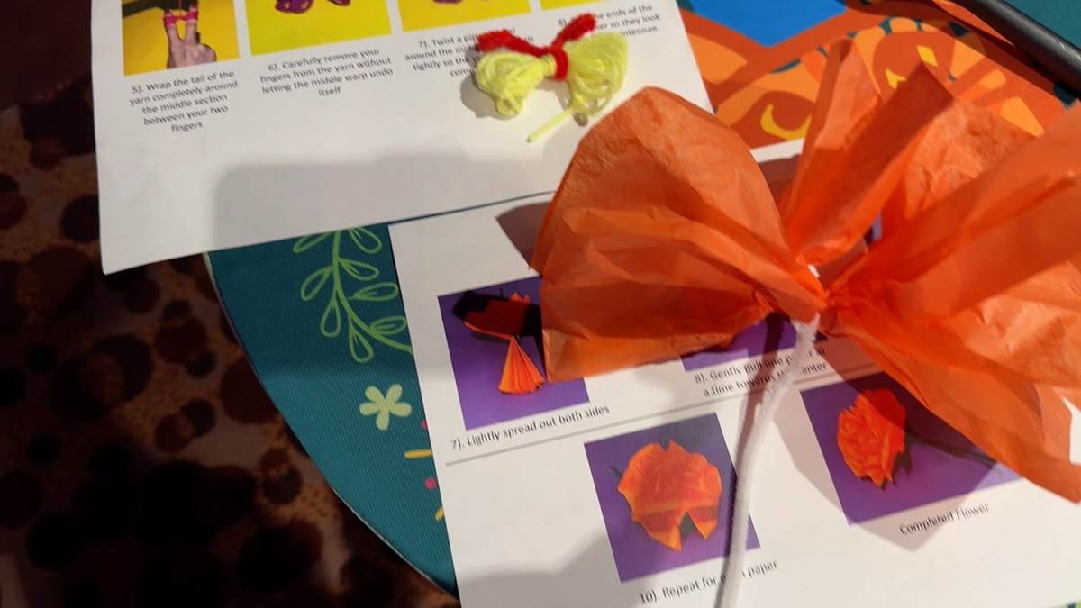 While families settled in, Guests were asked to create themed crafts - a yarn butterfly and a paper flower. Each table also included a maraca, which were used to get the host’s attention during rounds of trivia, in addition to becoming percussion during sing and dance-along moments.