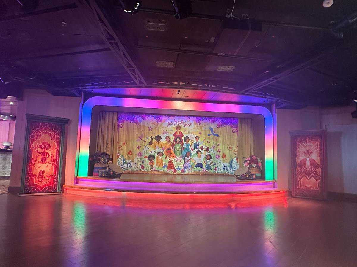 Among the new entertainment offerings aboard the Disney Magic is “An Encanto Celebration," an interactive experience for the entire family. On my recent Disney Cruise Line sailing, this event was offered twice in D Lounge, which instantly welcomes guests to Colombia with its themed decor. A curtain depicts the entire Family Madrigal, with pop-up doors for Alma and Antonio.