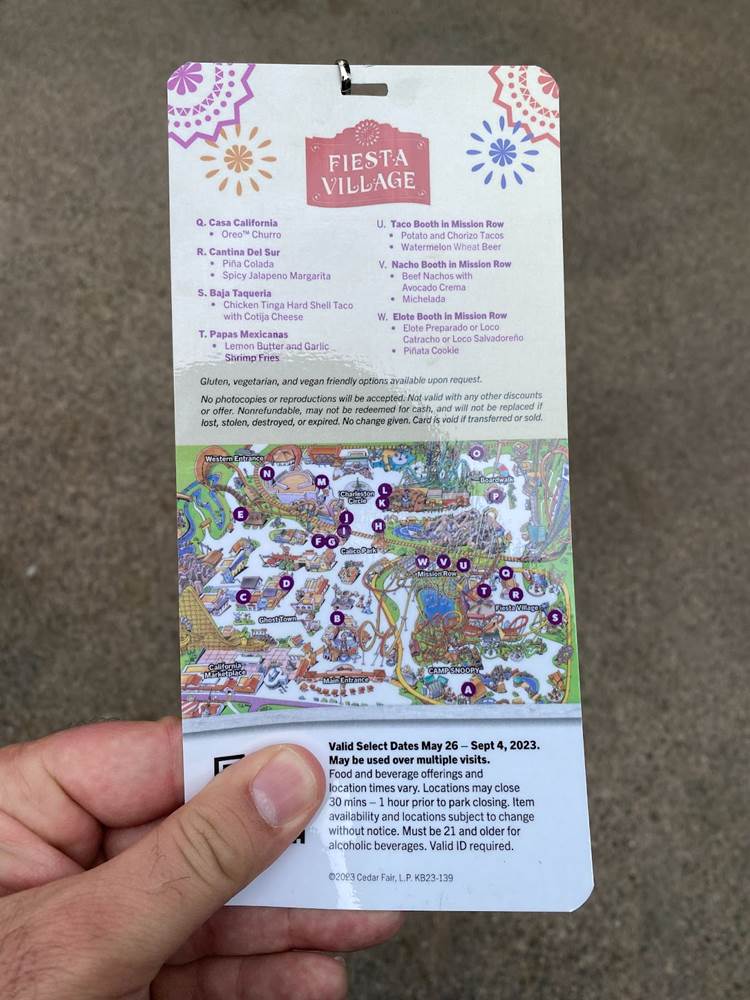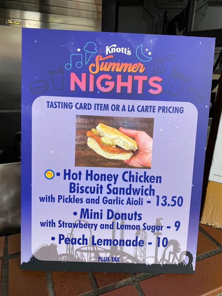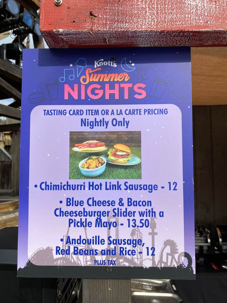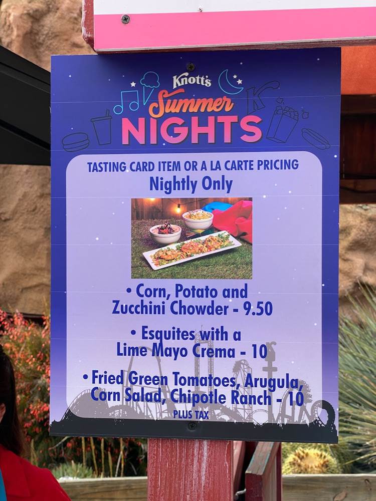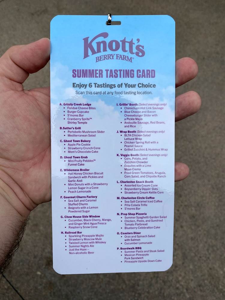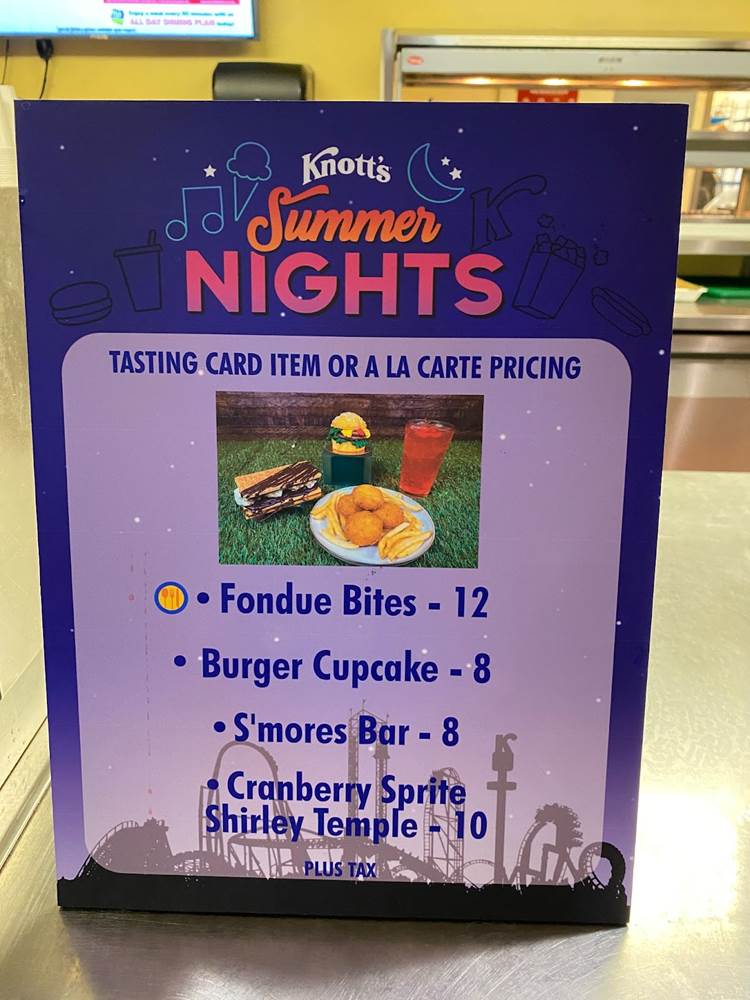 During our visit to Knott’s this past weekend, we were able to try out one of this year’s Knott’s Summer Nights tasting cards, which includes six menu items from the park’s creative array of seasonal selections.