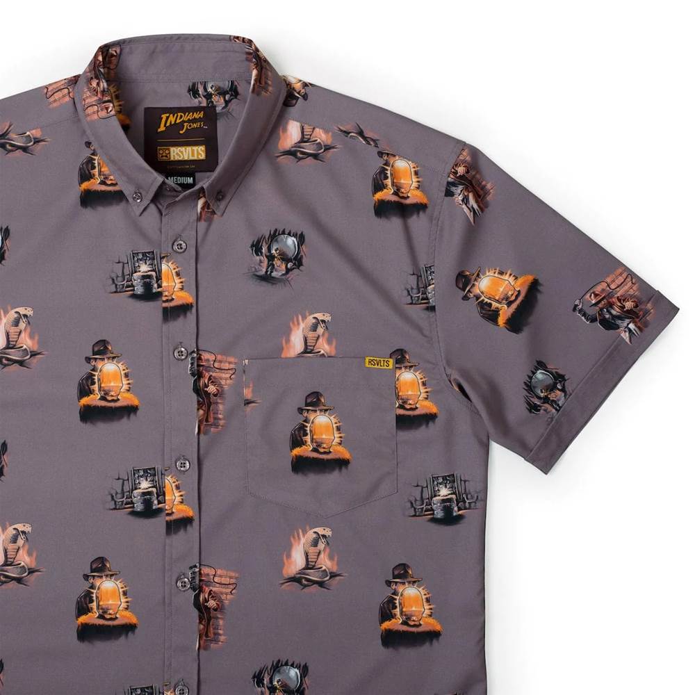 INDIANA JONES “BOULDERS, SNAKES, AND IDOLS" KUNUFLEX Short Sleeve Shirt from RSVLTS ($70) - “From the greatest opening scene in cinematic history to a face-to-face showdown with a king cobra, Raiders of the Lost Ark™ set a new standard for what an adventure film could be. Now you can set a new standard for what an Indy superfan can be by rocking (or should we say boulder-ing) this epic KUNUFLEX™ button down tribute to the film that started it all."