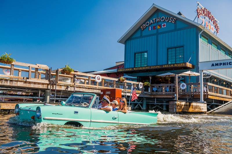 Have you ever wanted to try driving your car right off the shore and into the blue waters? That’s exactly what the Boathouse Amphicars offer adventurous guests. These vintage-looking cars drive on land and enter the water seamlessly at the end of a loading ramp, taking guests on a captain-guided, 25-minute tour of the landmarks of Disney Springs. This unique trip through the waters of Disney Springs costs a little extra, but the experience is truly one-of-a-kind.