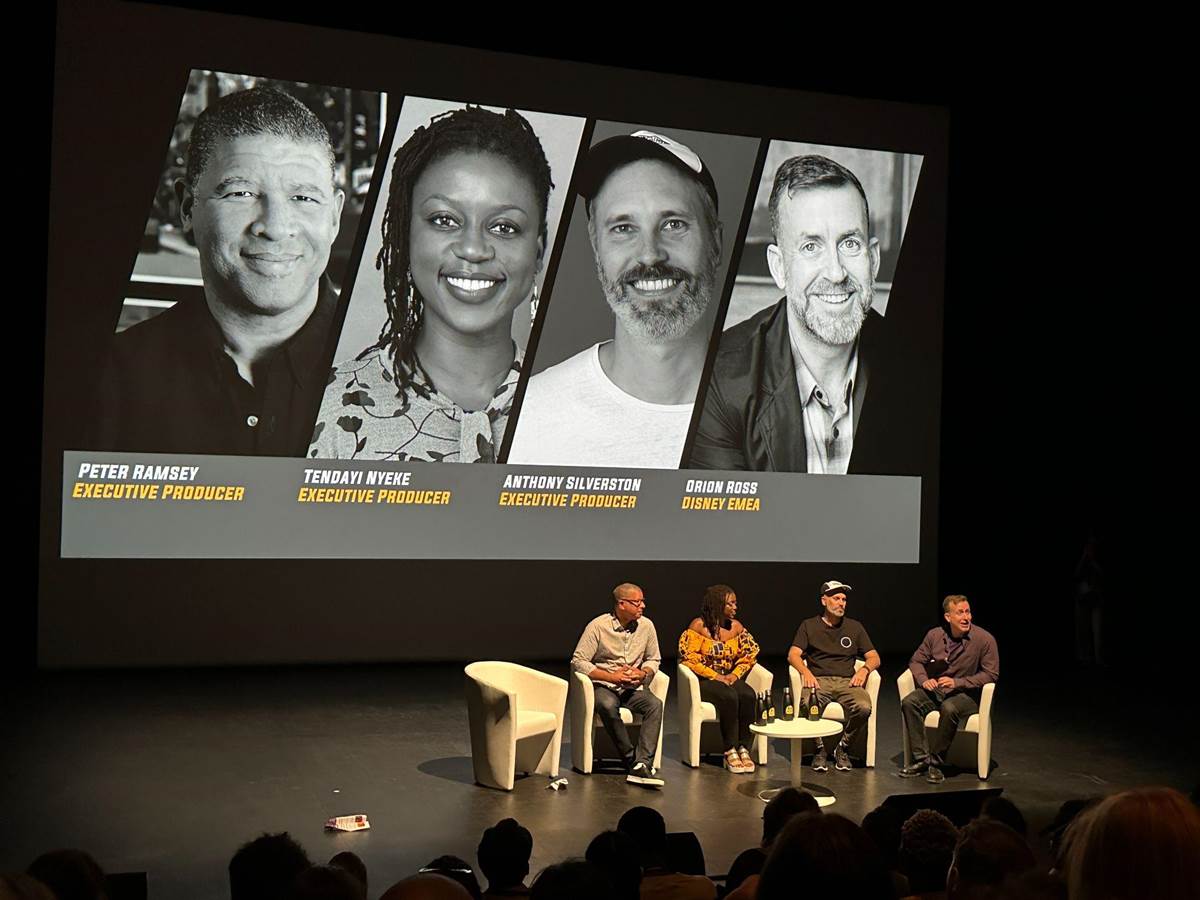 Leading the presentation was Orion Ross, VP of Animation for Disney EMEA. A collaboration with South African studio Triggerfish (Kiya and the Kimoja Heroes, "Aau's Song" from Star Wars: Visions), Orion was joined by Triggerfish executive producers Tendayi Nyeke and Anthony Silverston, alongside Spider-Man: Into the Spider-Verse executive producer Peter Ramsey. The presentation began with an overview of the series’ origins. It was Spider-Man: Into the Spider-Verse that first brought Peter Ramsay to South Africa for the Cape Town International Animation Festival. So when he heard about this opportunity shortly after, he jumped at the chance to join the project. Tendayi and Anthony were busy in 2020, inviting seventy-three creatives to pitch their concepts. Thirty-three were shortlisted, fifteen were put into development, and of those, ten were chosen to move into production. With many of the artists behind the projects making their animation directorial debut with the series, many of them have paired up to get a total of fourteen directors through the ten episodes.