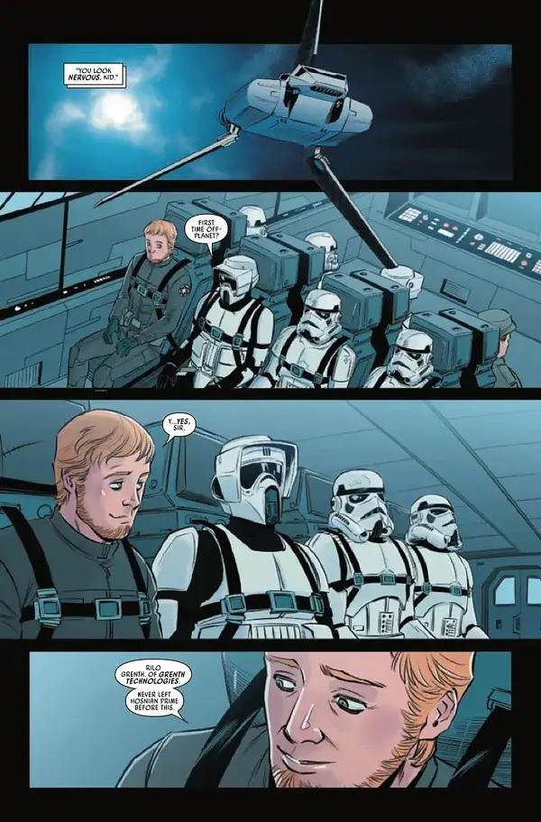 Empire zooms in on a contractor being brought to the forest moon of Endor to sync up the Imperial computer systems there. His name is Rilo Grenth and he is the son of the owner of Grenth Technologies, a company recently commandeered by the Empire for the sake of expediency in their continued quest for control over the entire galaxy. But from the very beginning of his mission, Rilo is looked down upon by the Imperial officers, stormtroopers, and other soldiers stationed on Endor. They mock him for being “green," push him aside in the hallways, and force him to eat by himself in the mess hall– though Grenth tells his parents the opposite in the messages he sends home to the planet Hosnian Prime. Rilo does his best to earn the respect and friendship of his peers on Endor, attempting (and failing) to play matchmaker between two Imperials and attempting to expedite the efficiency of his task by improving the computer systems. He even ventures outside in an attempt to appreciate the local scenery, only to be confronted by a hostile Ewok. But these efforts always seem to end in disaster, and when Grenth accidentally stumbles on the plans for the Death Star being constructed around the moon, he faces the wrath of an officer who is unwilling to take the young man’s lack of experience as an excuse.