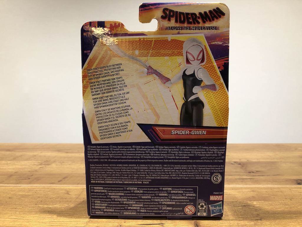 Spider-Gwen is a new Hasbro figure that features the energetic and totally cool web slinger from the Sony’s Spider-Verse trilogy. She’s designed for play and can be given to kids ages 4 and up. She’s depicted in her spidey suit and comes packaged on a cardboard card with some awesome Spider-Man details.