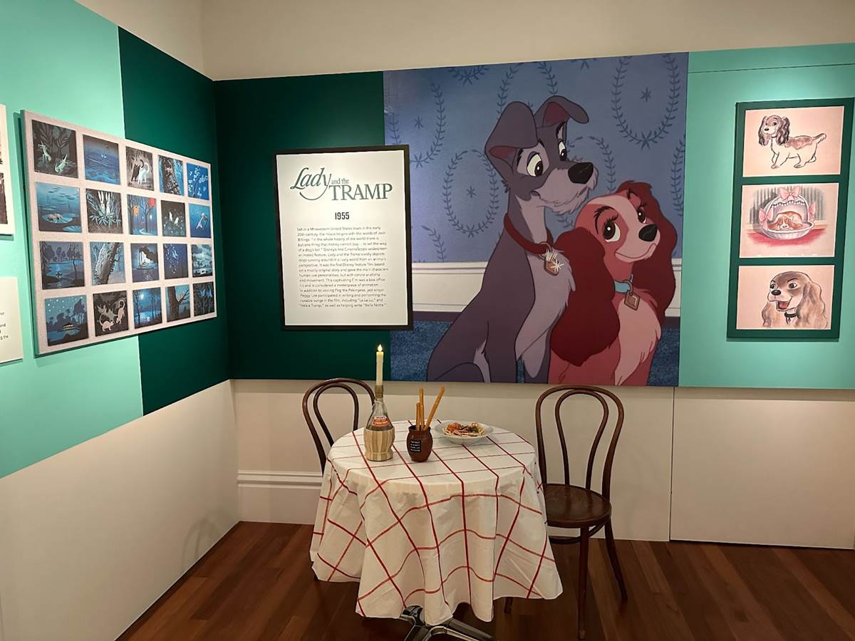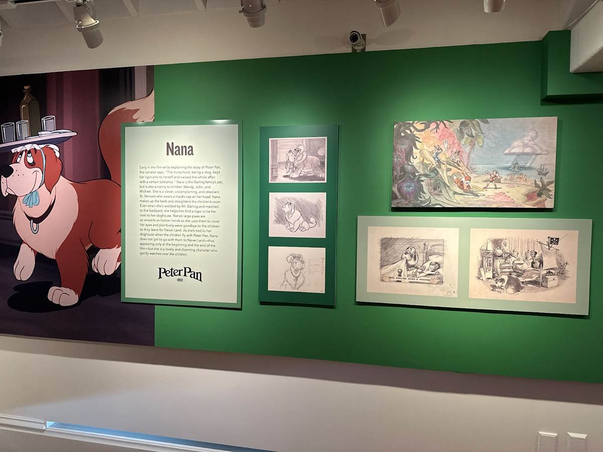 As a pawrent of two pups and a Disney fan, a special exhibit full of artwork of Disney dogs was of personal interest to me. It offers some fun surprise-and-delight moments, like personal photos of Walt Disney and his family with their dogs and a Lady and the Tramp photo opportunity. And overall, I’m thrilled with the final result, but there were a few characters I expected to see who were missing. Humanoid dogs and cats like Goofy, Pete, and Julius (from the Alice Comedies) are missing, for example.