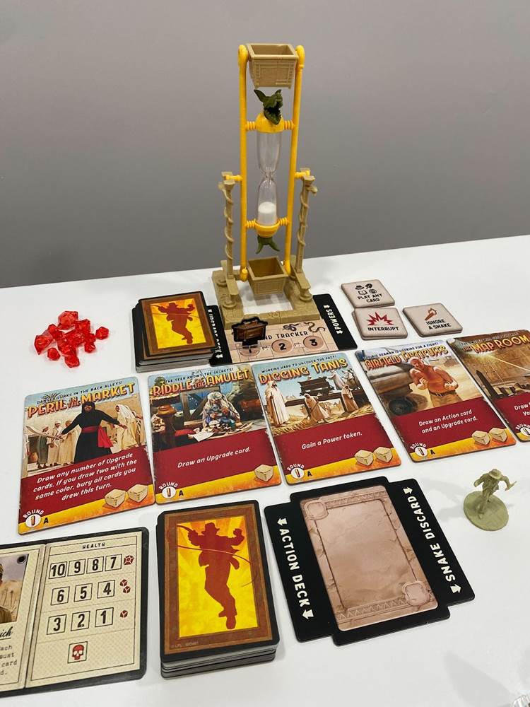 My only real issue with this game is that my brain does not move fast enough to keep up with the rapid-fire card placement once the combat phase begins. My friends and my wife, who are all smarter and quicker than I am, were made to shout instructions at me for which cards to play next and which dice to roll, but only because I was moving too slowly and as a team you’re always working against that sand timer. That issue with my own quick-thinking shortcomings aside, I could see “Sands of Adventure" being a really fun and very exciting game for families who are into Indiana Jones as a franchise, and Raiders of the Lost Ark specifically as a movie. It doesn’t take a tremendous amount of time to set up or learn, and once you do the action is pretty much non-stop. Personally, I’m more into games that lean toward the exploration side of things more heavily than the fighting, and as implied above I would vastly prefer to have time to choose my next move, but I will say that the design and (especially) the artwork on display here was enough to keep me entertained and amused as an Indy enthusiast.