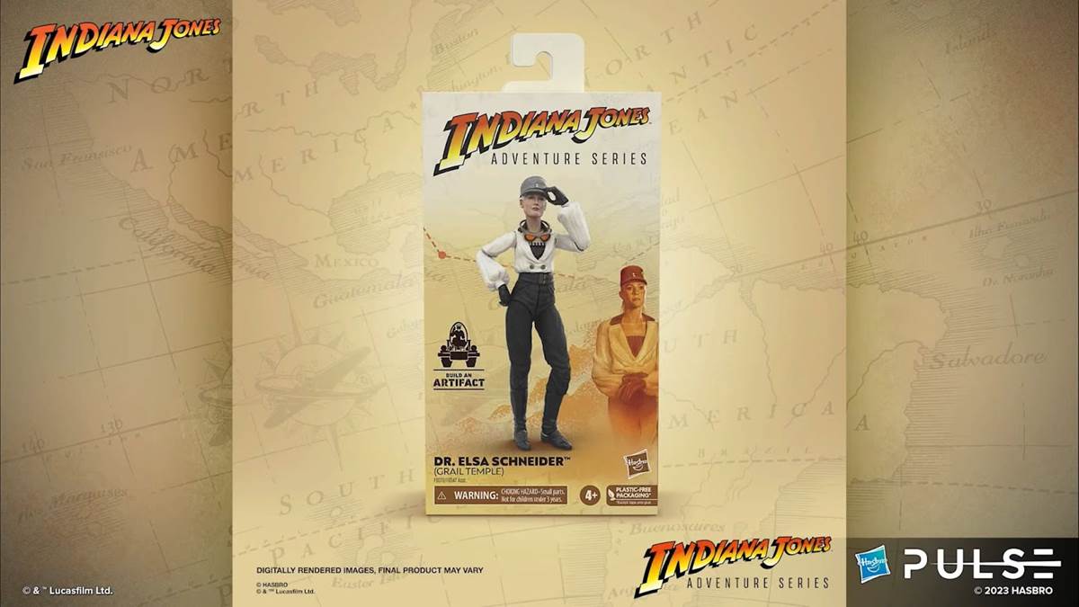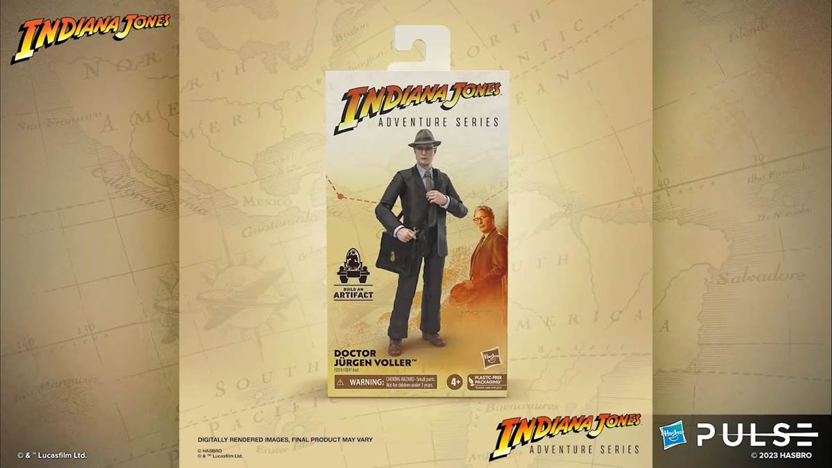 In the embedded video below, you can watch as the Hasbro Indiana Jones team unveils the Adventure Series action figures depicting Indiana Jones himself (as he appears in Last Crusade), Dr. Elsa Schneider, the Grail Knight, Henry Jones Sr., Jurgen Voller (Mads Mikkelsen’s character from Dial of Destiny), and Renaldo (as played by Antonio Banderas in the new film). Later on in the stream, Patrick also gets to interview actors Karen Allen (Marion Ravenwood) and John Rhys-Davies (Sallah) about their roles in the movies and how they feel about their Hasbro action figures.