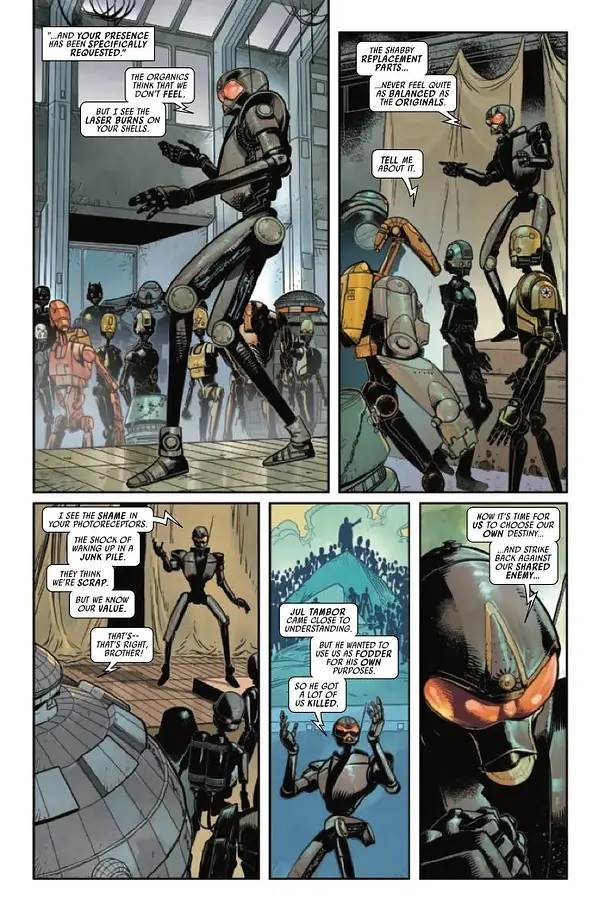 The newest issue of Star Wars: Darth Vader from Marvel Comics inches us ever so closely to the launch of the upcoming Dark Droids miniseries by having a group of droids rise up against the titular Dark Lord of the Sith.