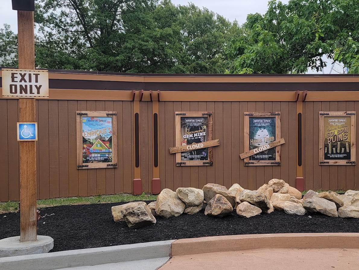 Kings Island delightfully quirky Adventure Express has received a few new looks to more strongly tie it into the overarching theme of Central/South American explorations, including a new ride marquee. The surprisingly thrilling wooden coaster takes riders along nearly 3,000 ft of coaster tracks through dense forest areas, foreboding caverns while navigating hills and sweeping curves. Don’t worry, your favorite oversized drumming stone gods still line the temple walls.